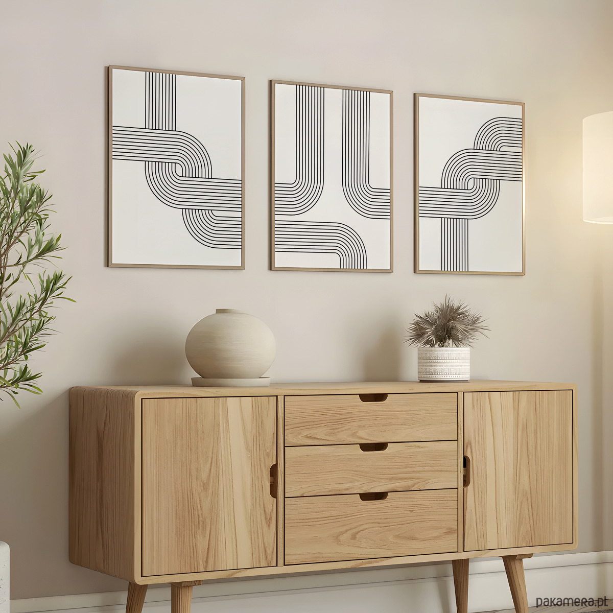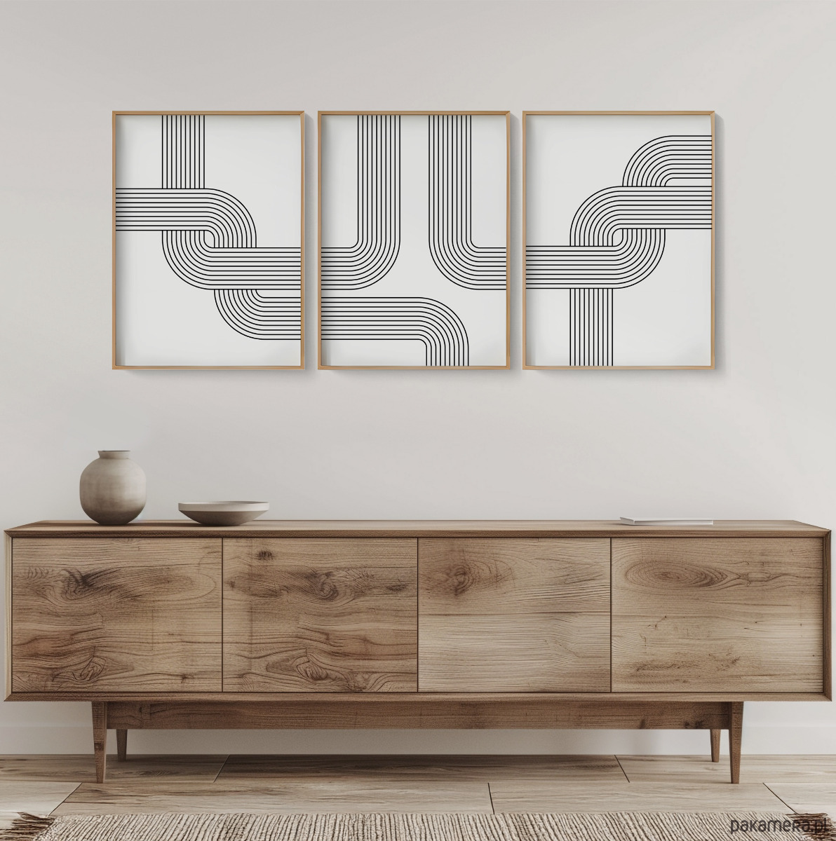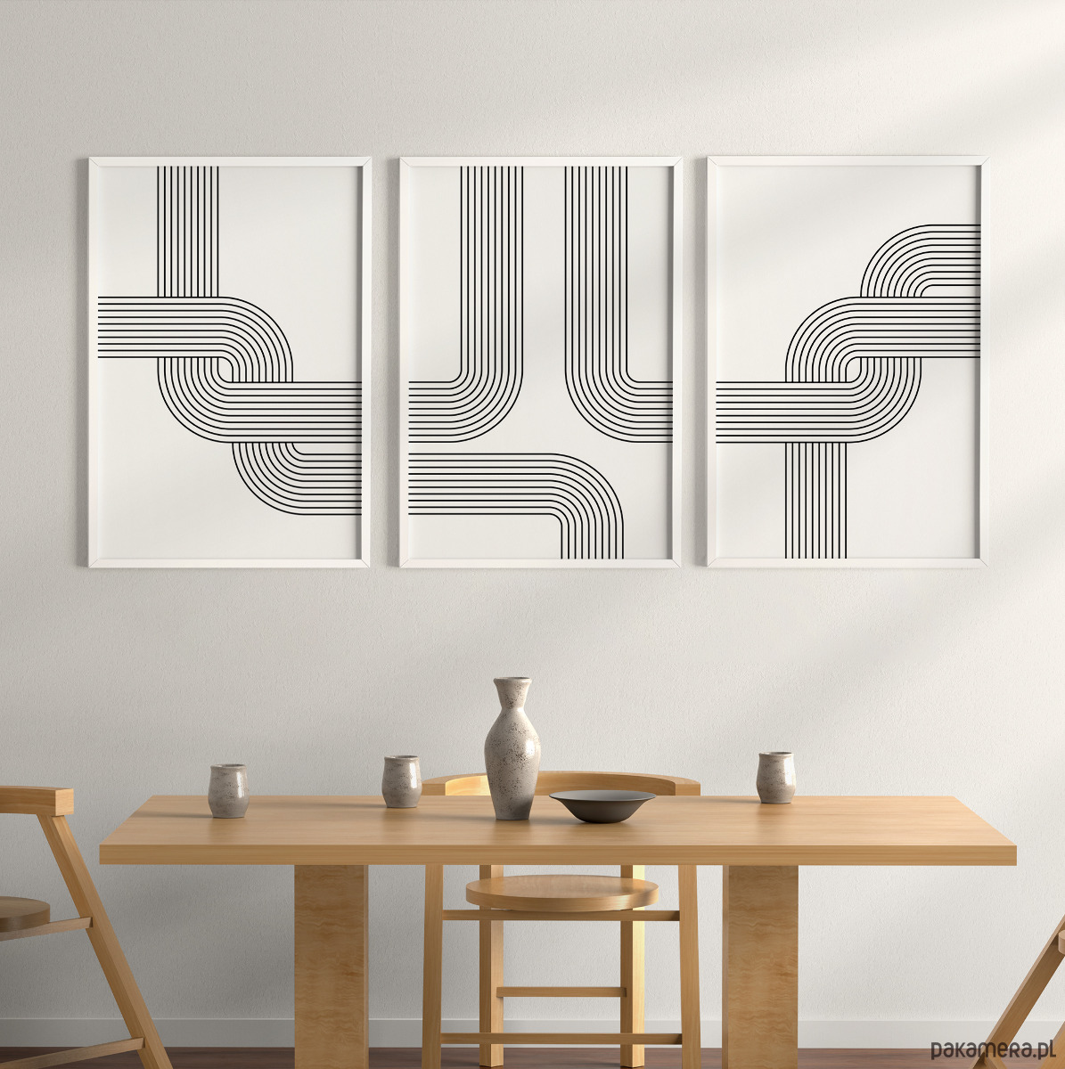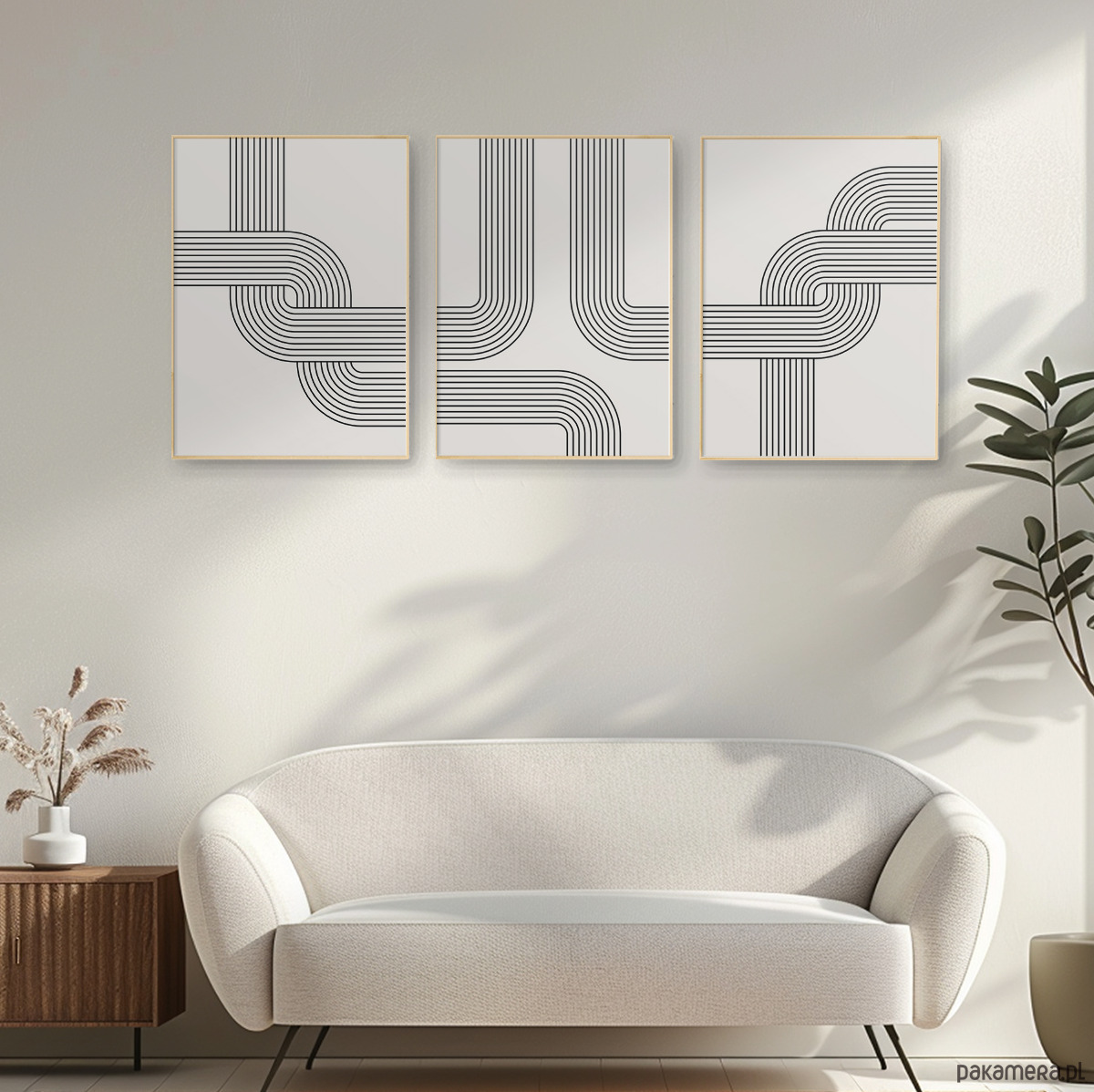 Zestaw 3 geometrycznych plakatów liniowych, do salonu, sypialni.