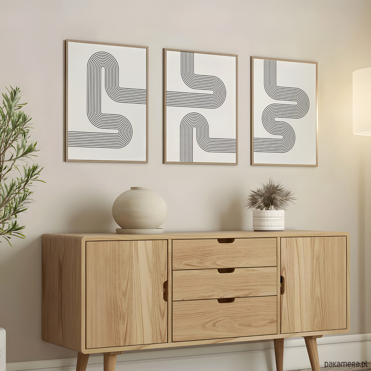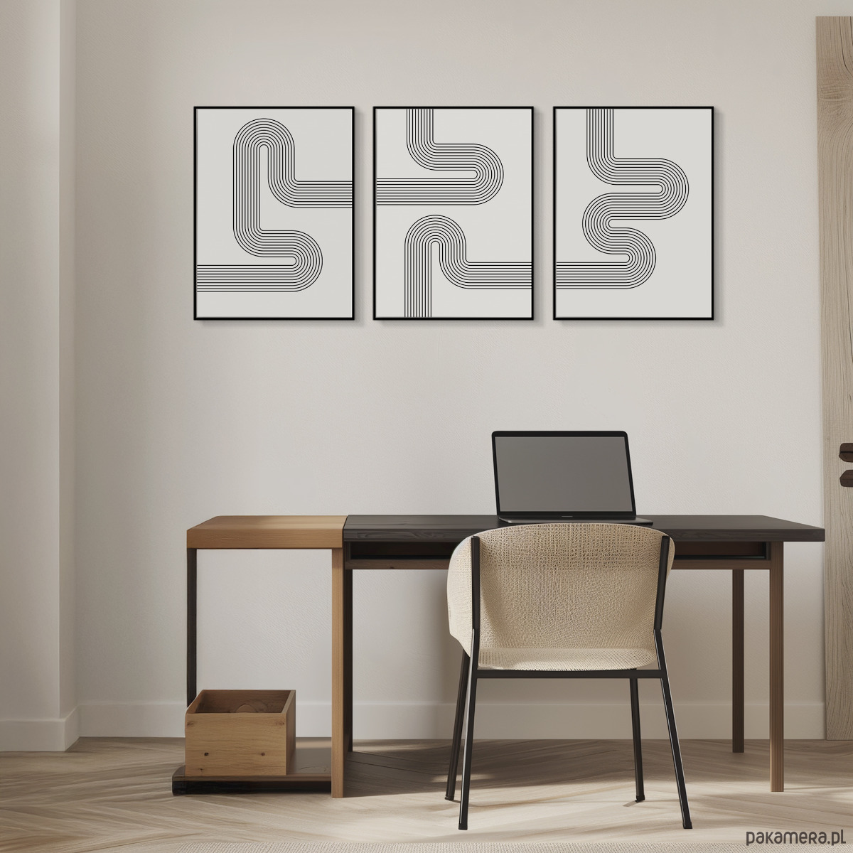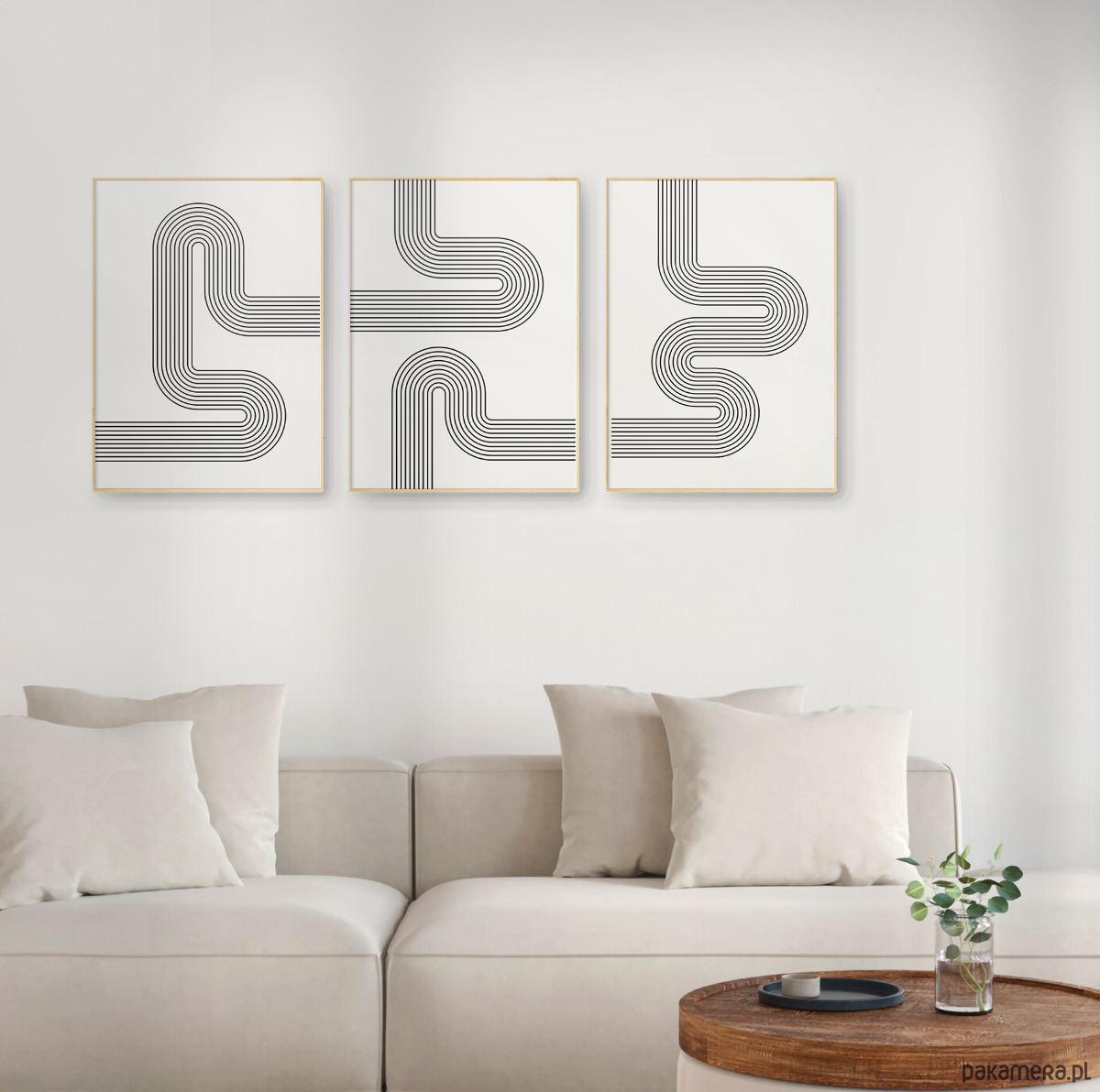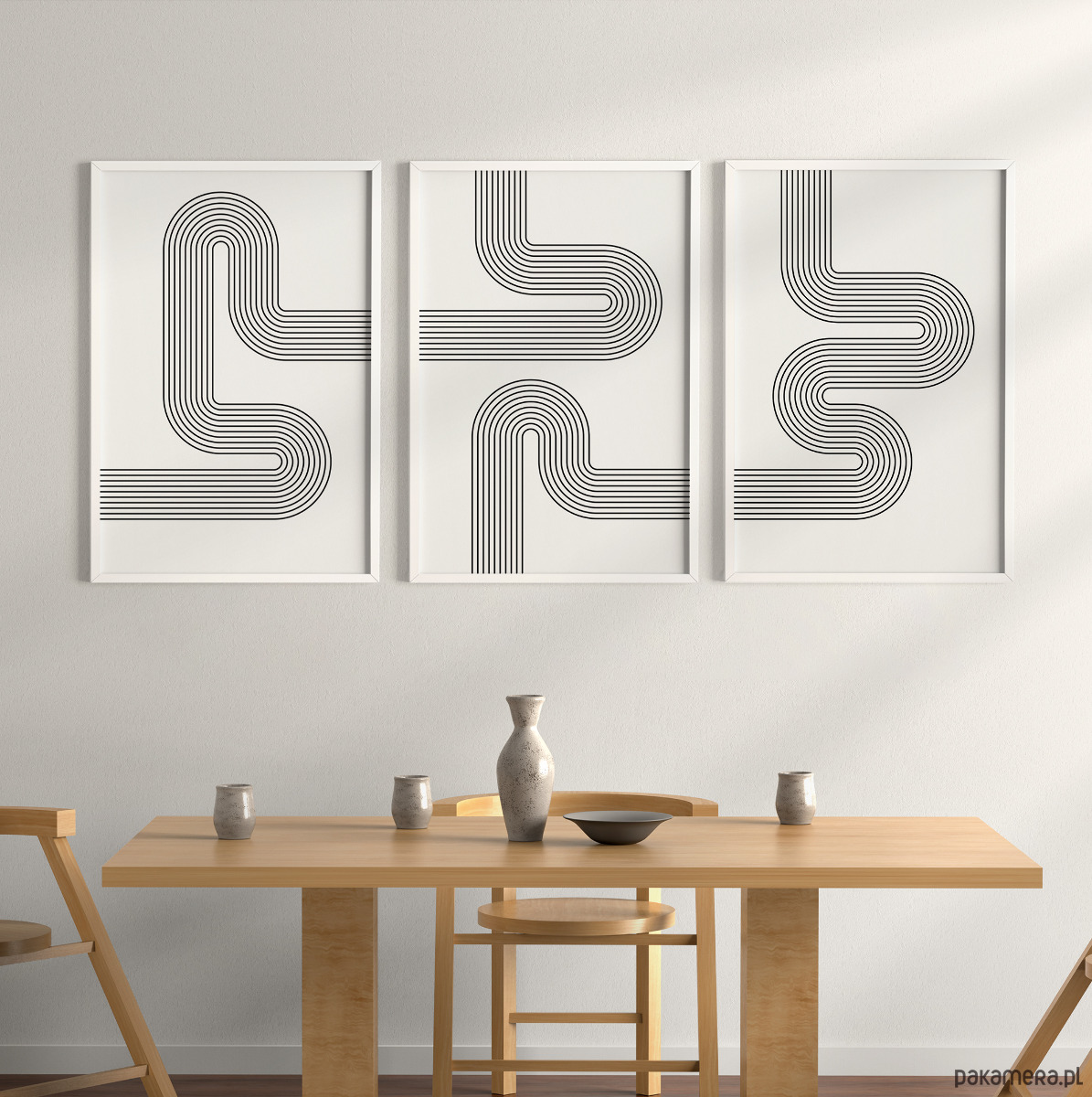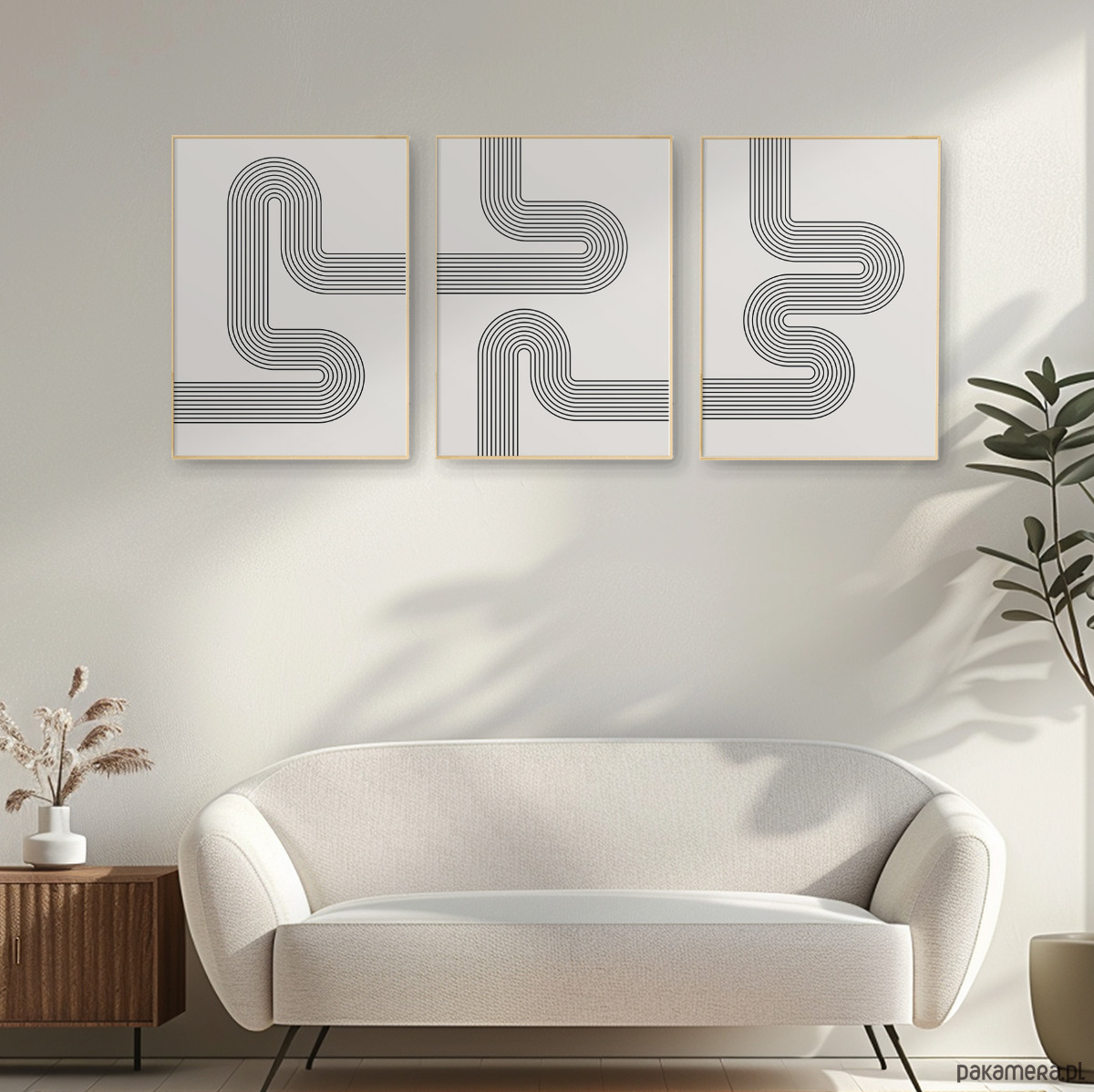 Zestaw 3 geometrycznych plakatów liniowych, do salonu, sypialni.