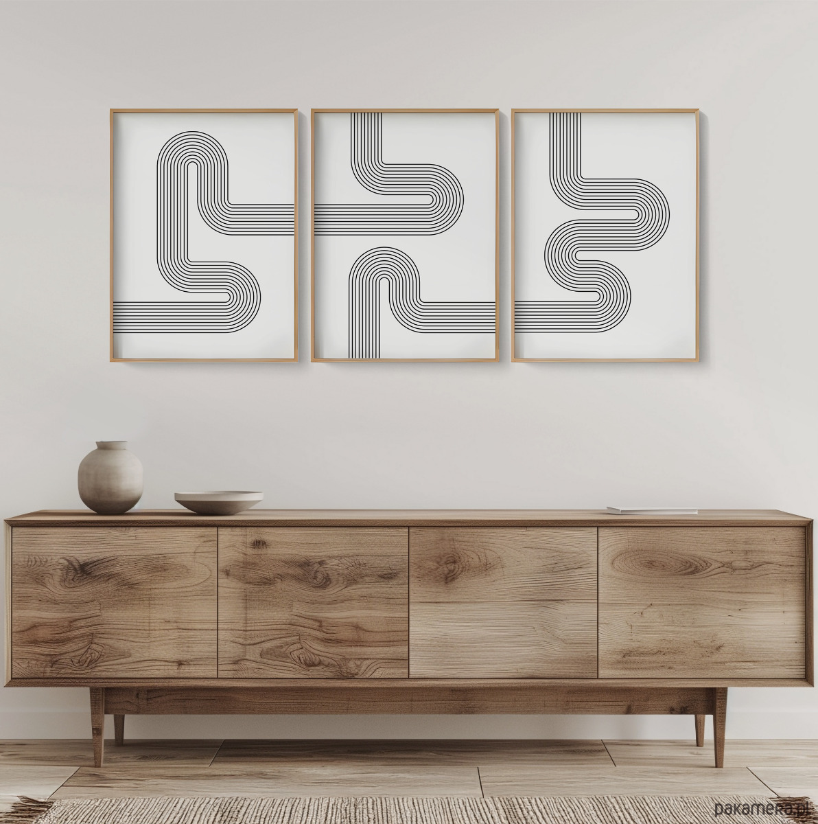 Nowoczesny zestaw 3 plakatów z geometrycznym motywem linii w stylu retro. Minimalistyczna forma i harmonijna kompozycja nadadzą wnętrzu elegancki, uporządkowany charakter. Idealne do salonu, sypialni lub biura – wszędzie tam, gdzie liczy się prostota i ponadczasowy design.