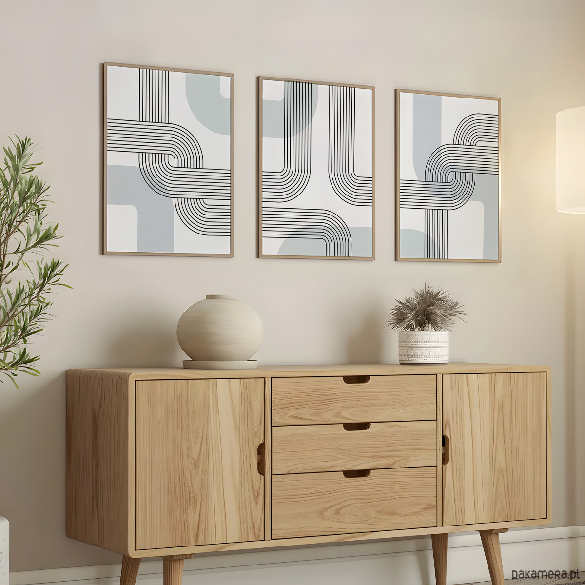Zestaw 3 geometrycznych plakatów liniowych, do salonu, sypialni.