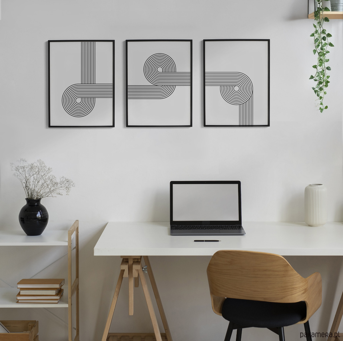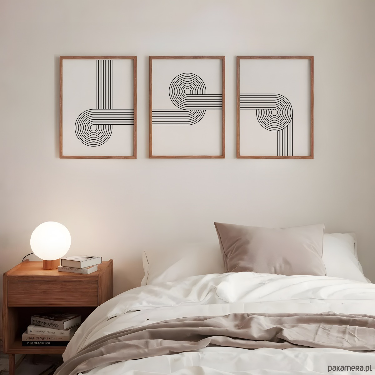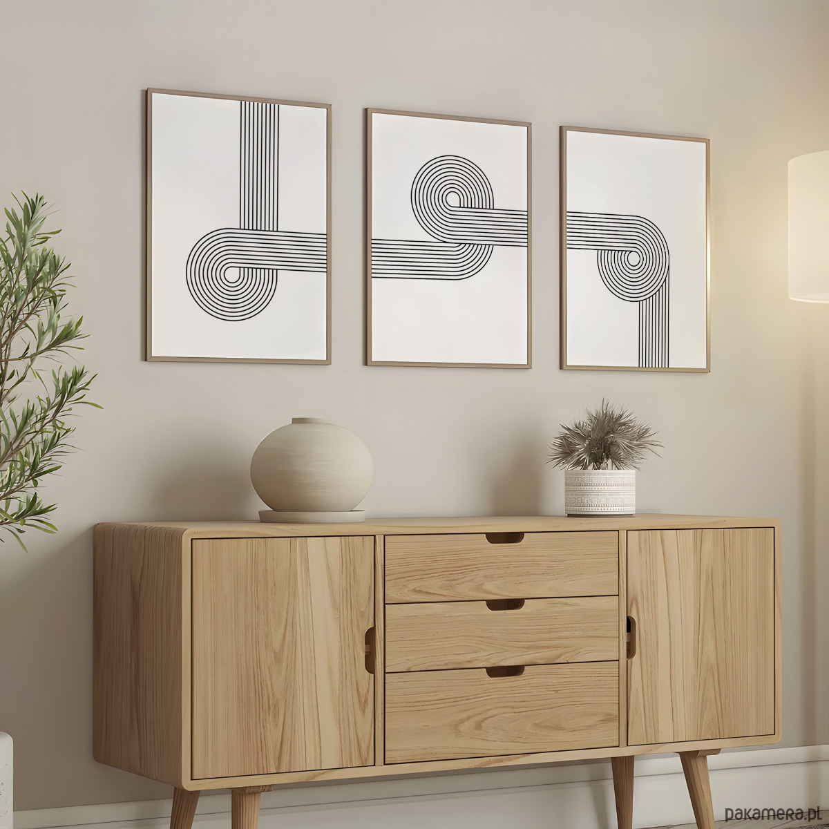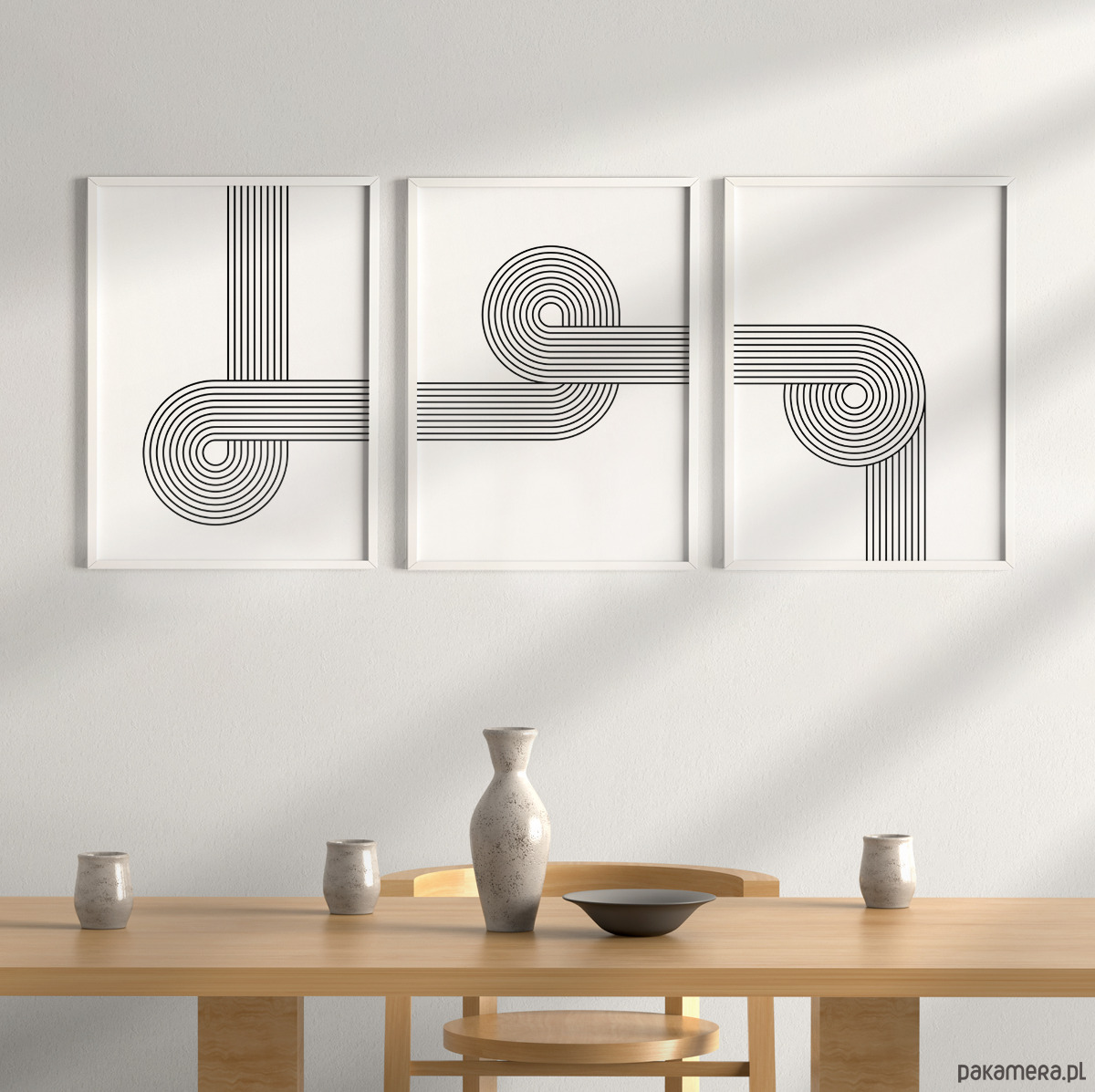 Zestaw trzech liniowych, geometrycznych plakatów w stylu retro. Proste formy i przemyślana kompozycja sprawiają, że grafiki świetnie odnajdą się w każdym wnętrzu – od salonu, przez sypialnię, aż po korytarz. To łatwy sposób na dodanie charakteru i stworzenie spójnej, eleganckiej aranżacji.