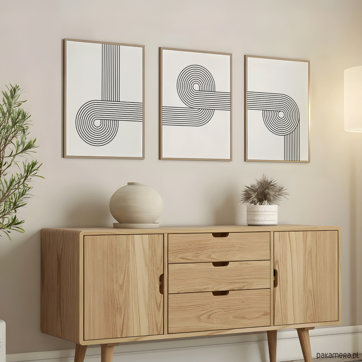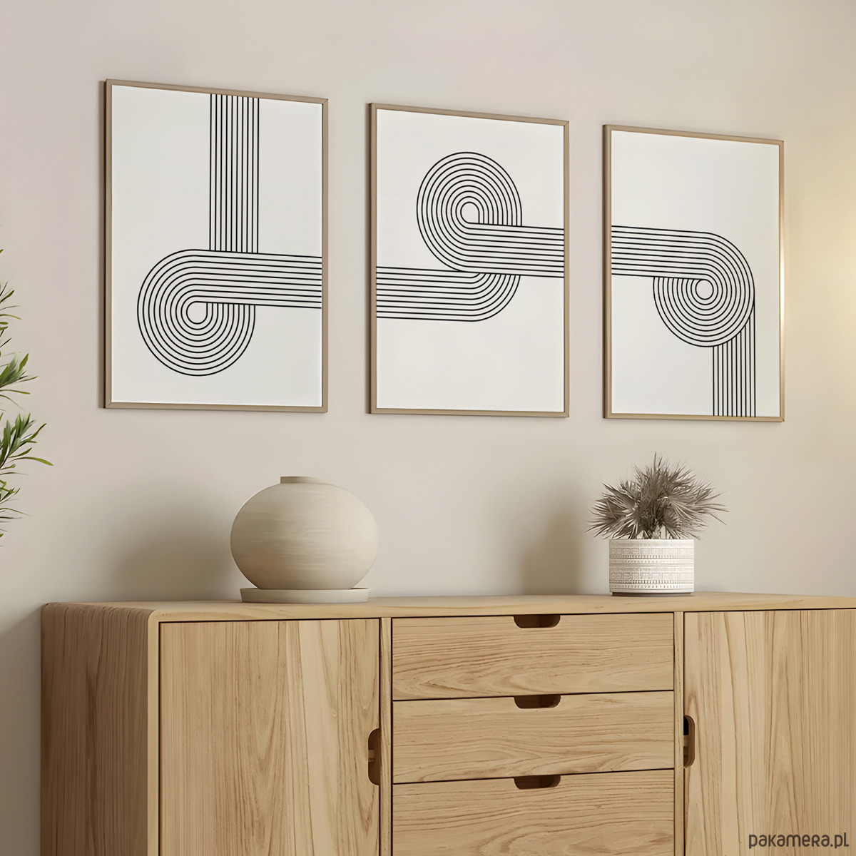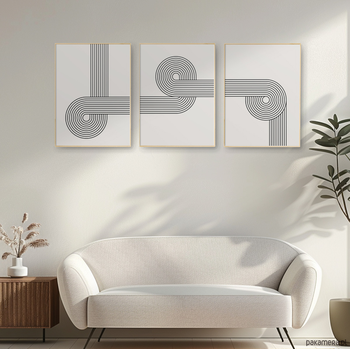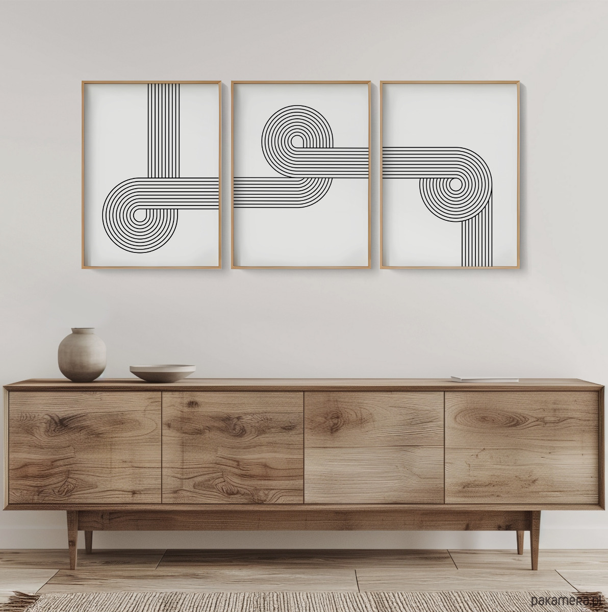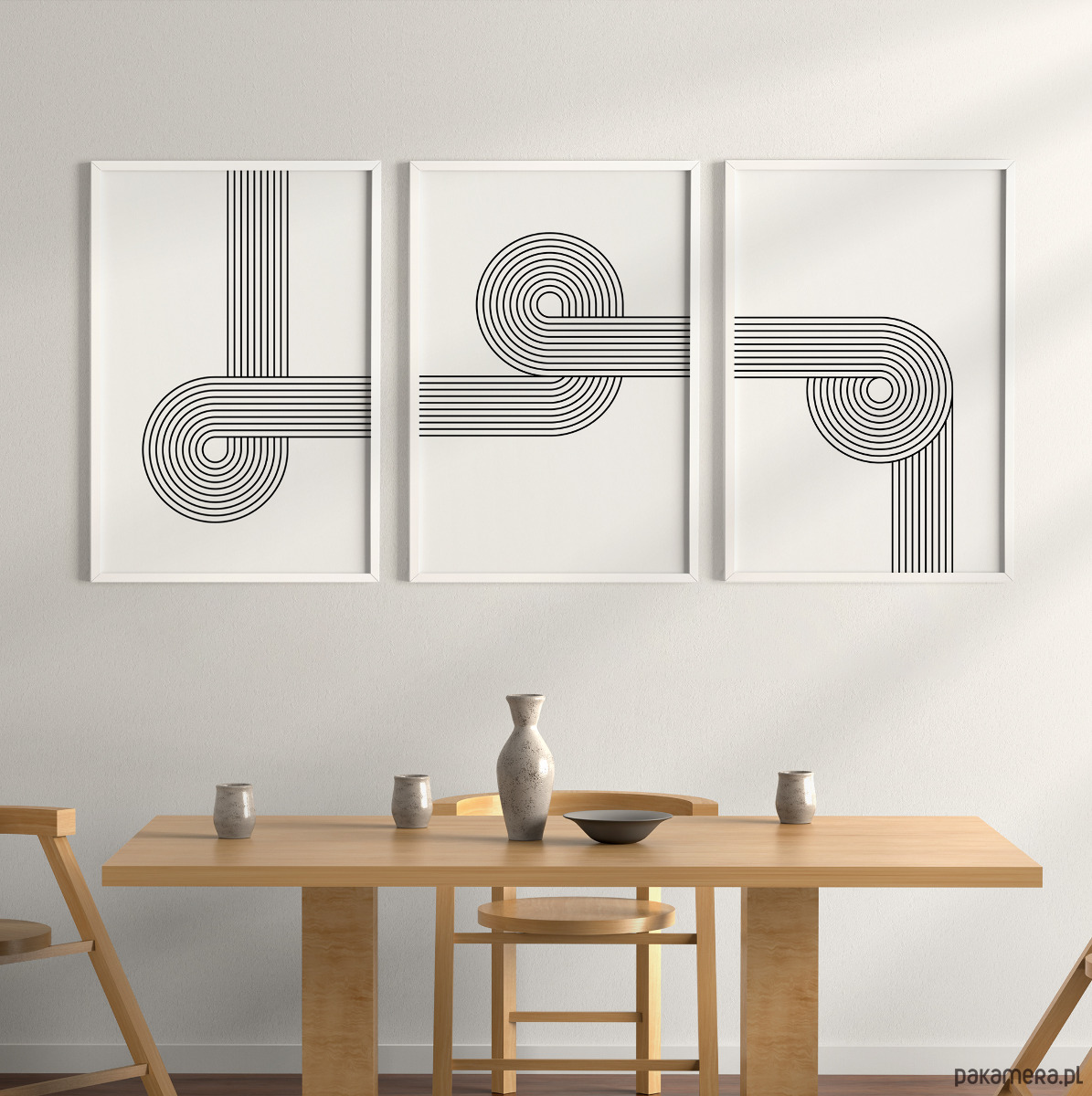 Nowoczesny zestaw 3 plakatów z geometrycznym motywem linii w stylu retro. Minimalistyczna forma i harmonijna kompozycja nadadzą wnętrzu elegancki, uporządkowany charakter. Idealne do salonu, sypialni lub biura – wszędzie tam, gdzie liczy się prostota i ponadczasowy design.