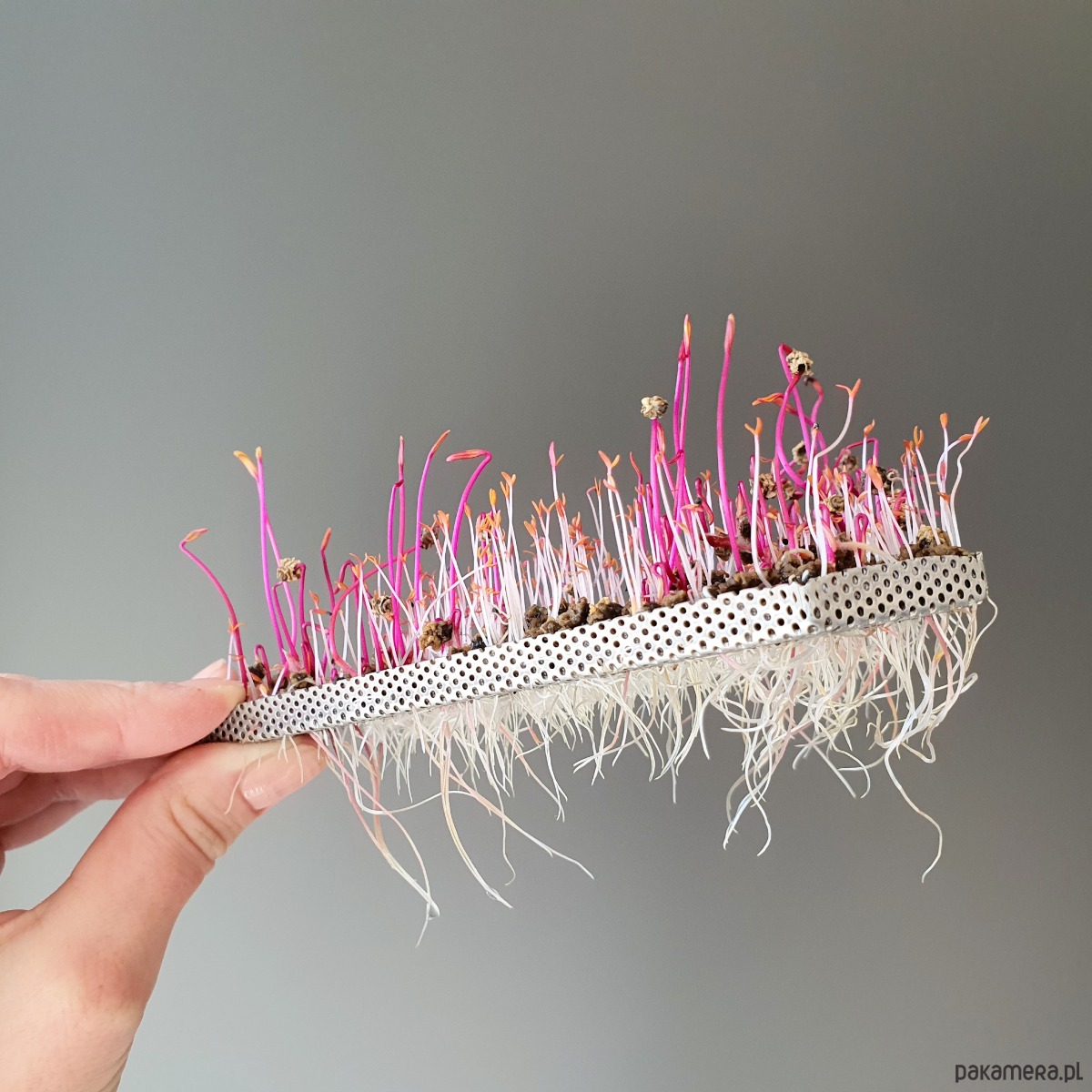 Można dokupić filcowy kapturek — idealny do kiełków, które lepiej rosną w ciemności.