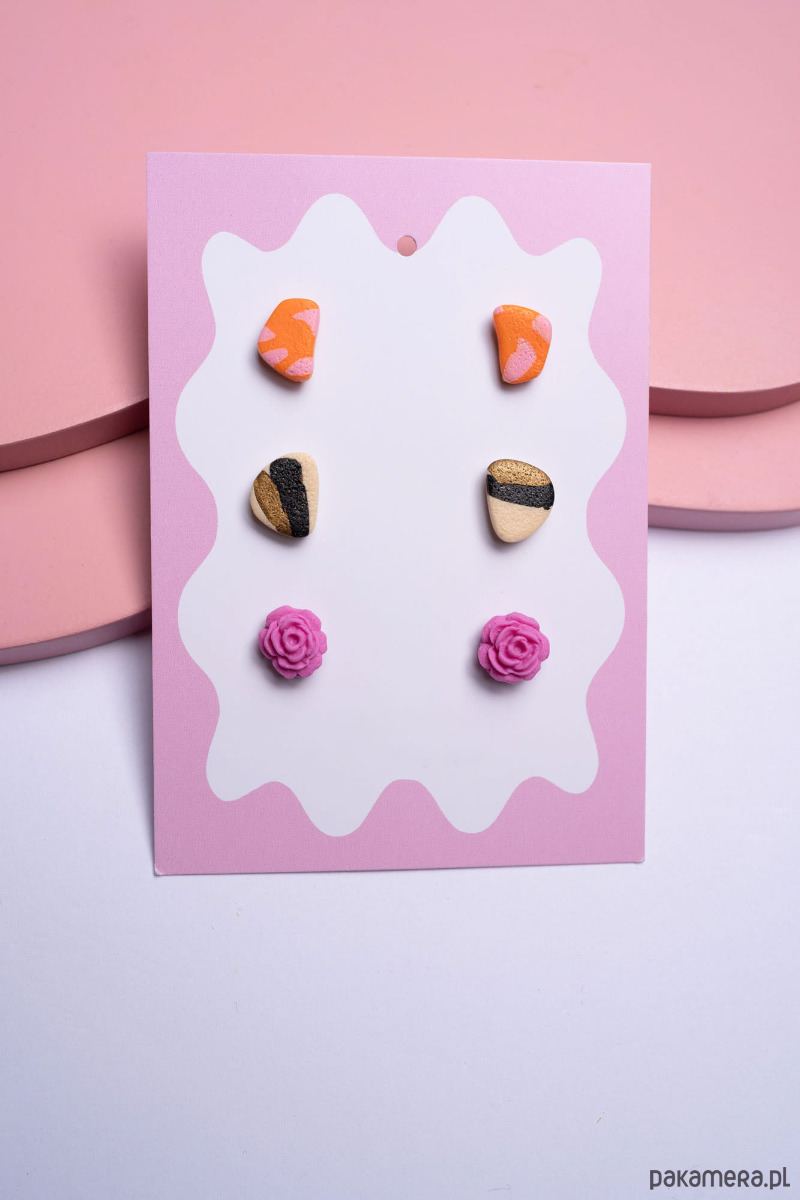 Kolczyki sztyfty tworzone ręcznie z ultralekkiej gliny polimerowej z dbałością o każdy szczegół.