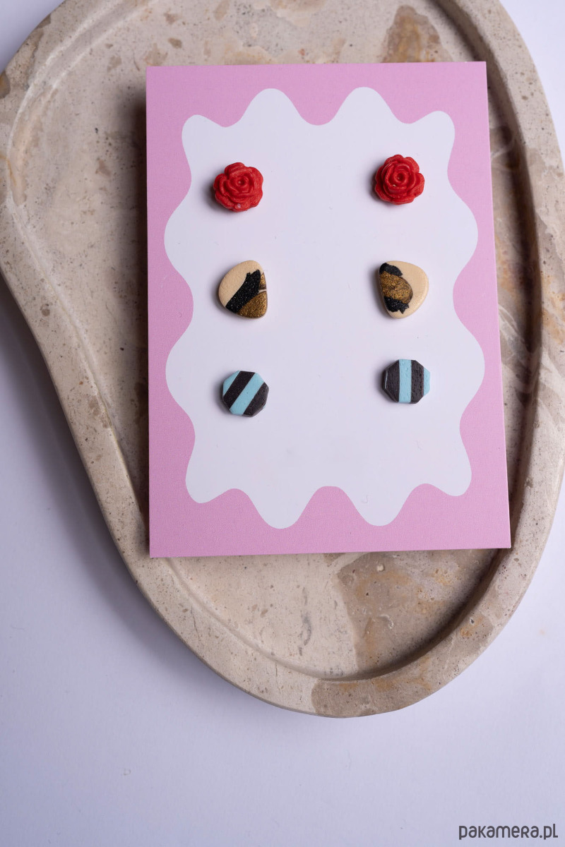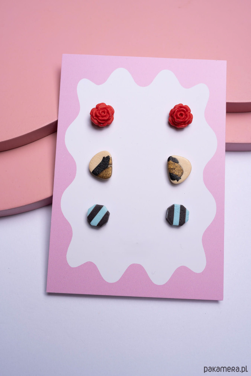 Kolczyki sztyfty tworzone ręcznie z ultralekkiej gliny polimerowej z dbałością o każdy szczegół.