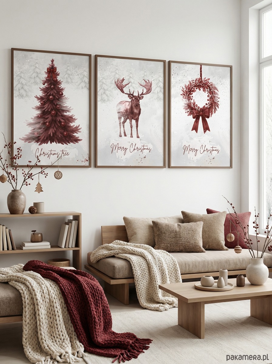 ZESTAW 3 AUTORSKICH PLAKATÓW z oryginalną grafiką w świątecznym i zimowym klimacie to idealny sposób, aby wprowadzić do wnętrza ciepło, magię i spokojną atmosferę, której tak bardzo pragniemy w tym wyjątkowym czasie. Stonowana kolorystyka, malarska estetyka i subtelne detale sprawiają, że plakat doskonale komponuje się z wnętrzami nowoczesnymi, skandynawskimi, boho, japandi czy industrialnymi. Taka dekoracja nie tylko zdobi, ale również tworzy nastrój, do którego chce się wracać :)