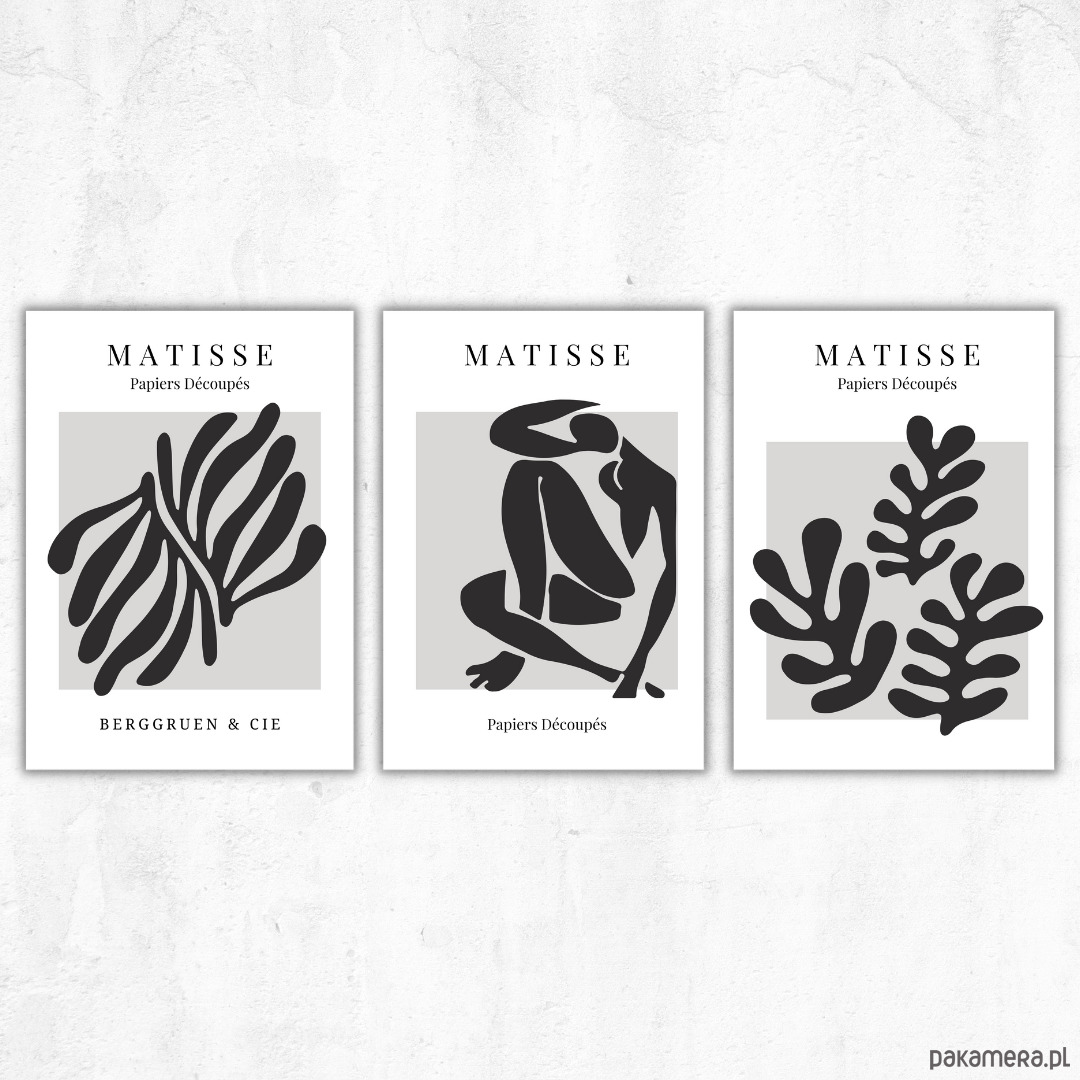 Zestaw 3 plakatów Elegance of gray Matisse style
