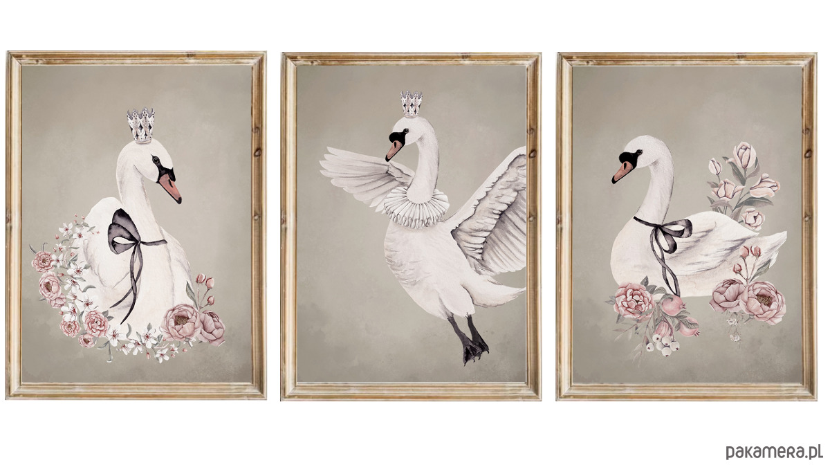 Zestaw 3 plakatów obrazków Swan A3 PZ