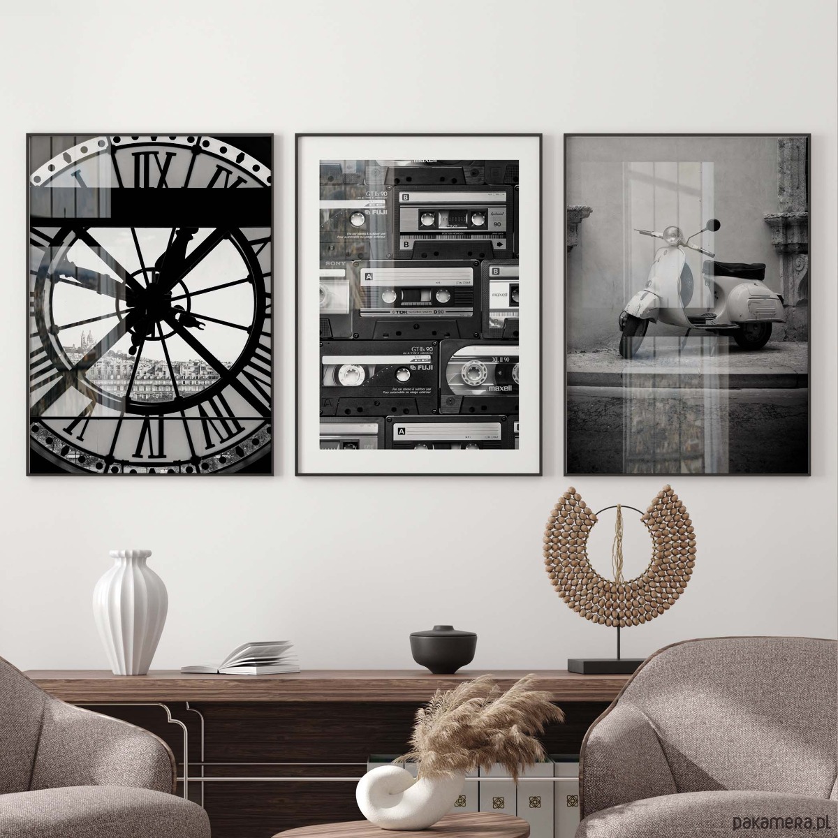 Stylowy zestaw trzech plakatów w rozmiarze 30x40 cm, który idealnie dopełni nowoczesne, industrialne i minimalistyczne wnętrza. Kompozycja utrzymana jest w stonowanej kolorystyce czerni, bieli i delikatnych odcieni szarości, dzięki czemu wprowadza do pomieszczenia harmonię, klasę i ponadczasowy charakter.