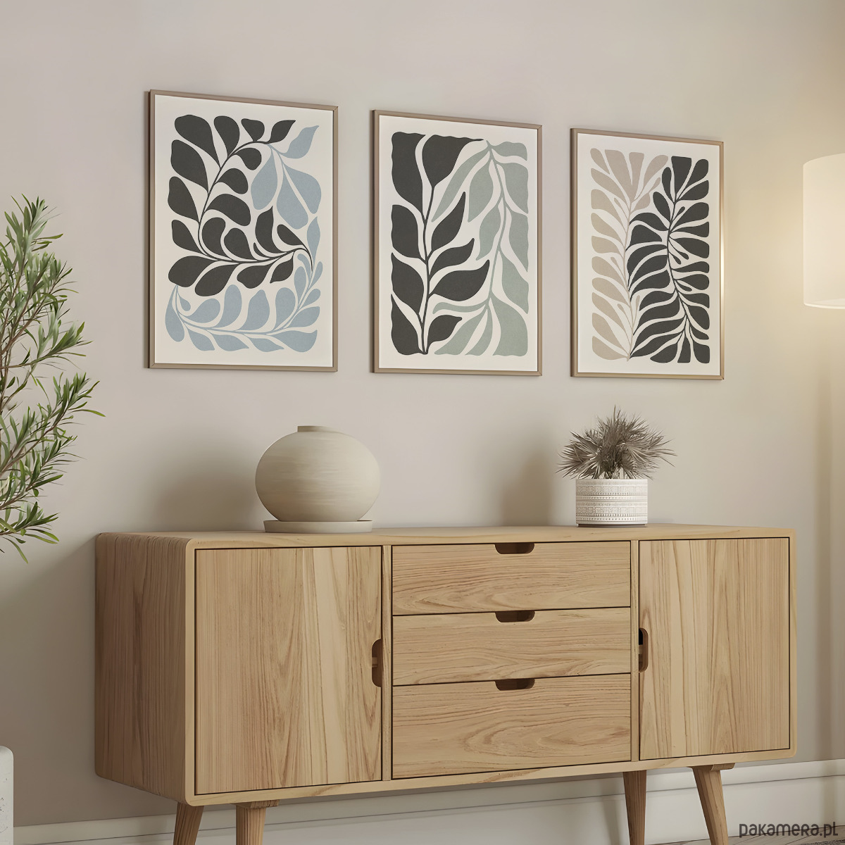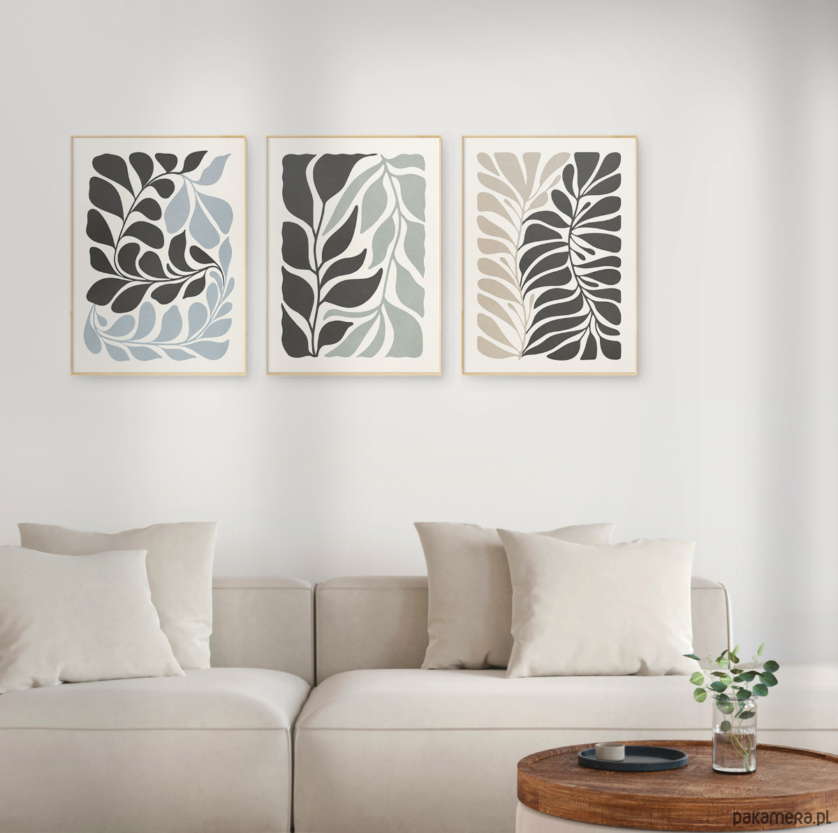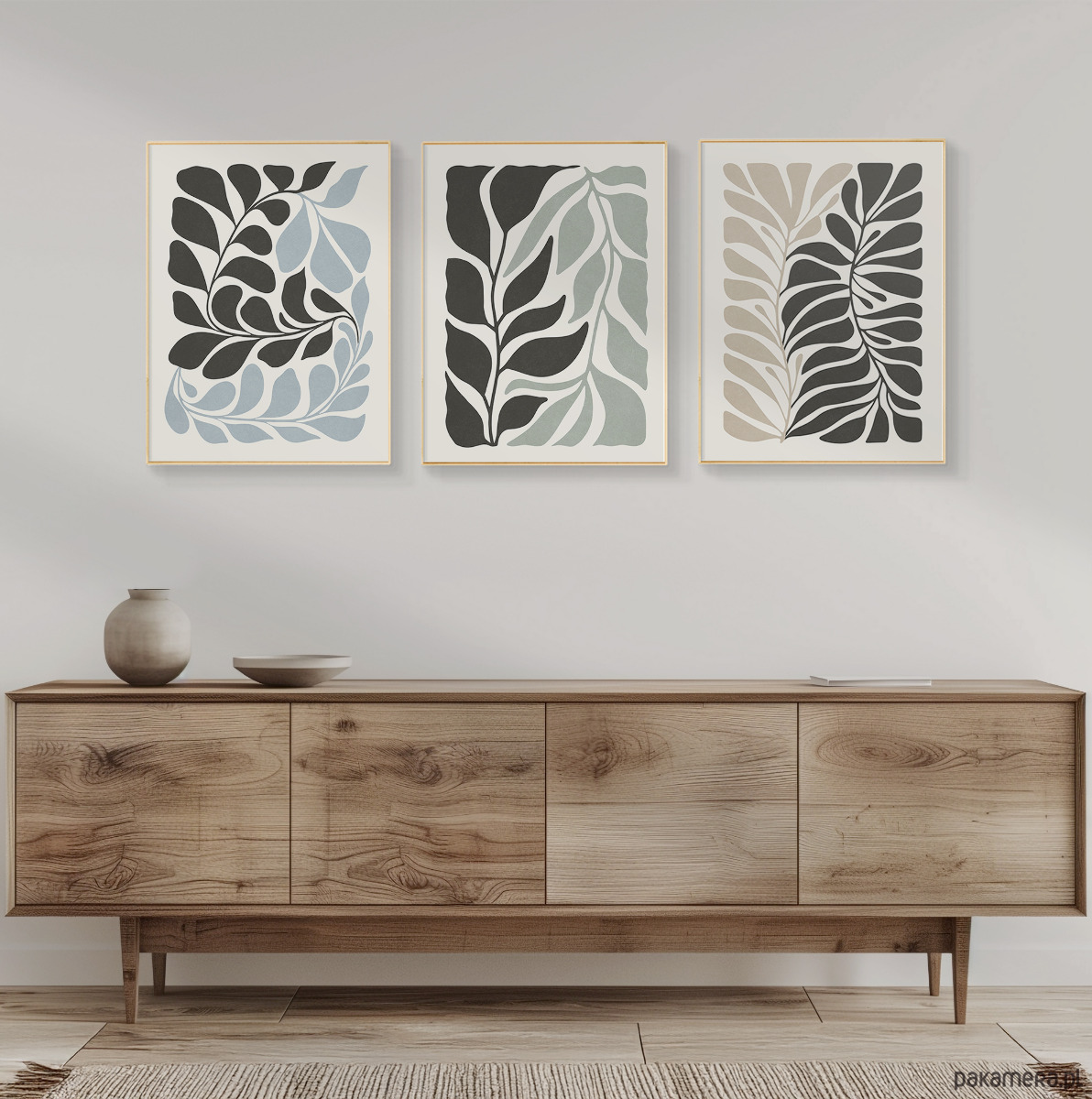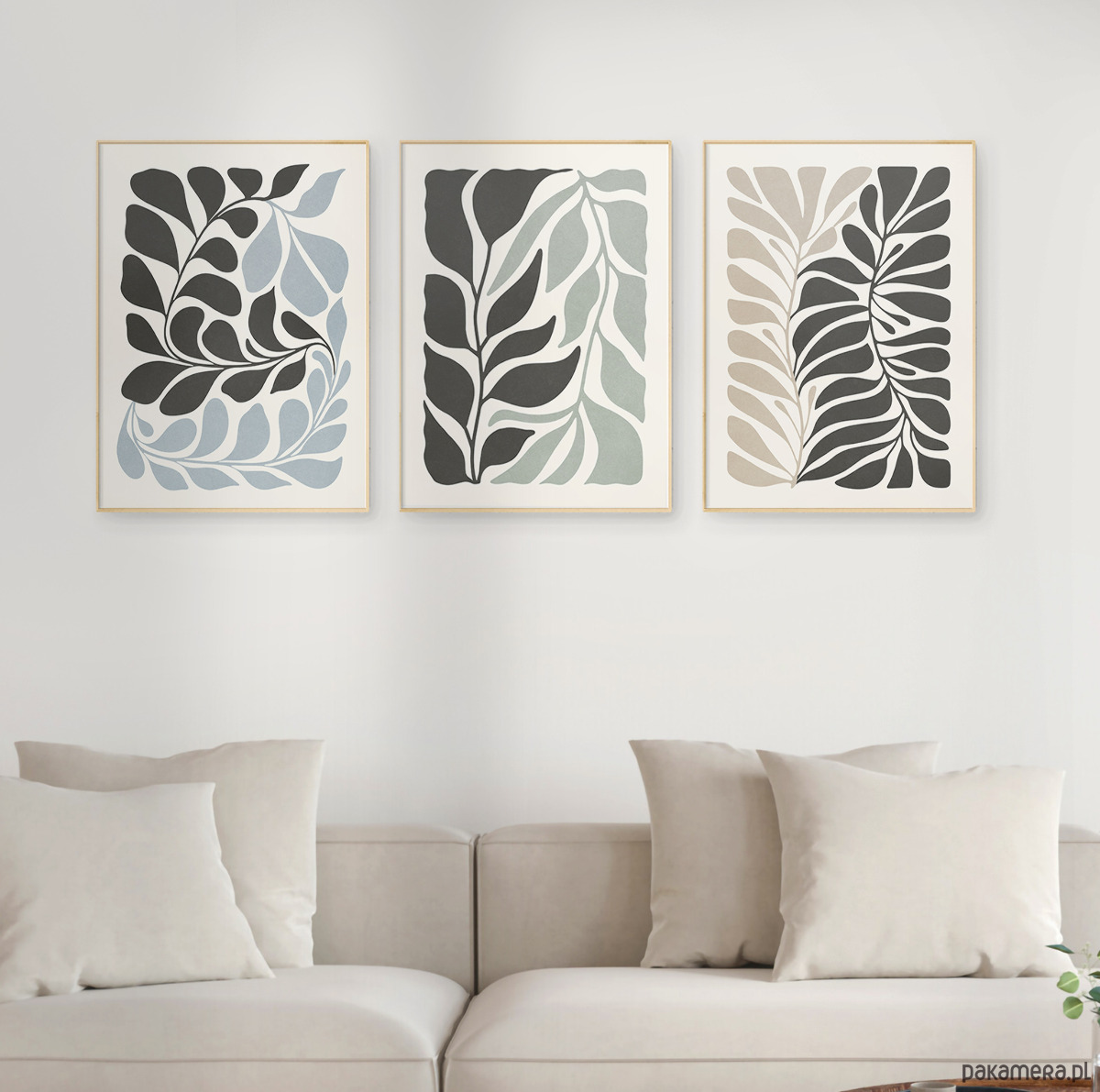 Zestaw trzech plakatów z motywem abstrakcyjnych roślin i kwiatów. Spójna kompozycja, stylowa, minimalistyczna paleta barw oraz subtelna tekstura nadają plakatom wyjątkowy charakter, doskonale wpisując się w nowoczesne wnętrza.