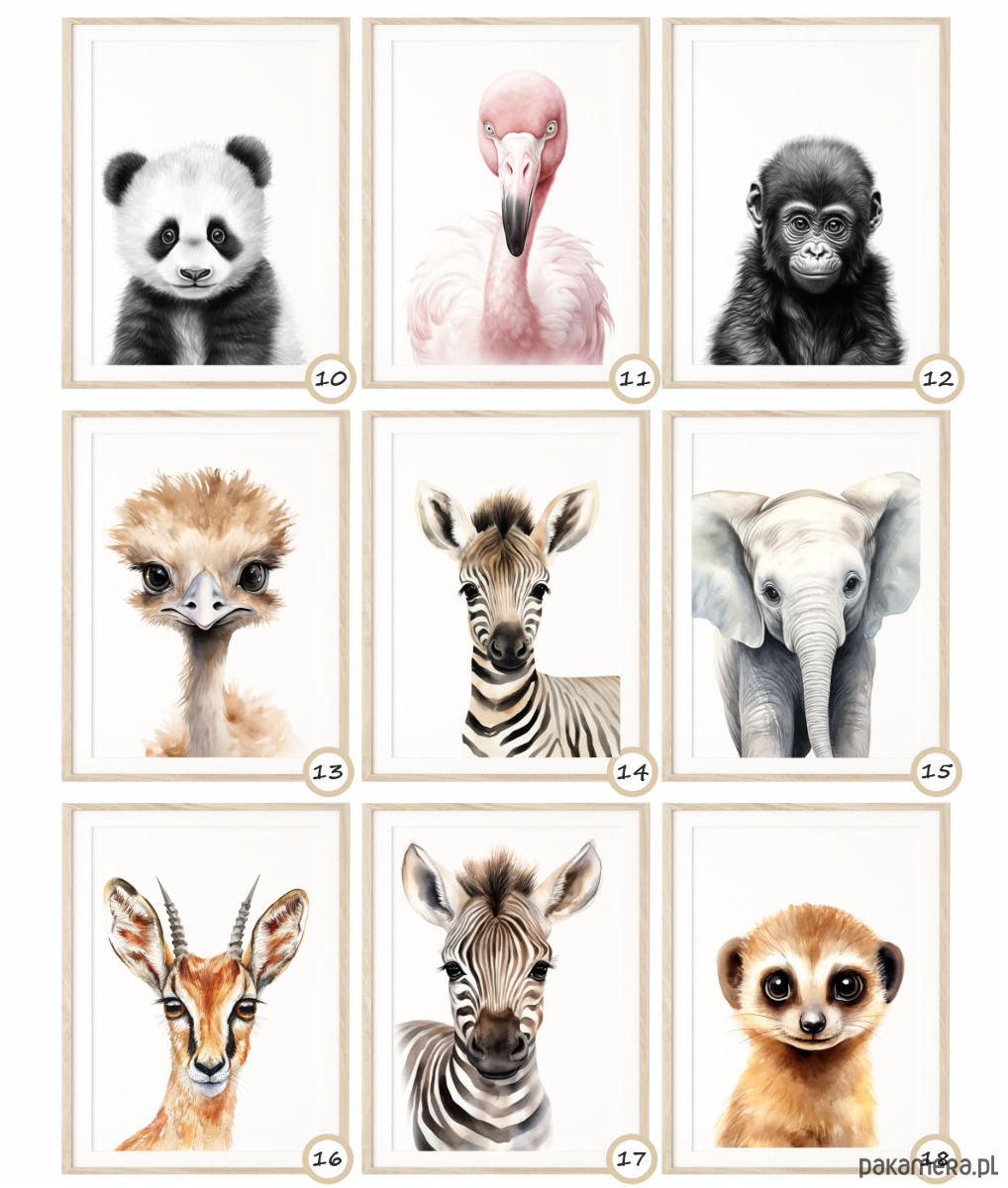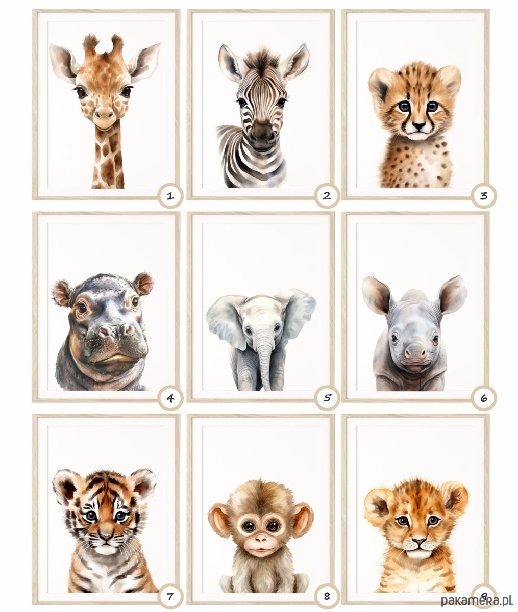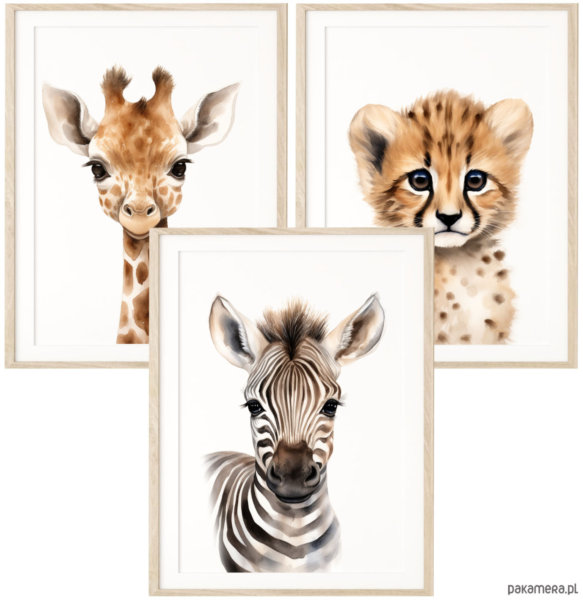 Zestaw 3 obrazki, plakaty portrety zwierząt Safari żyrafa, gepard, zebra Różne wzory !!!