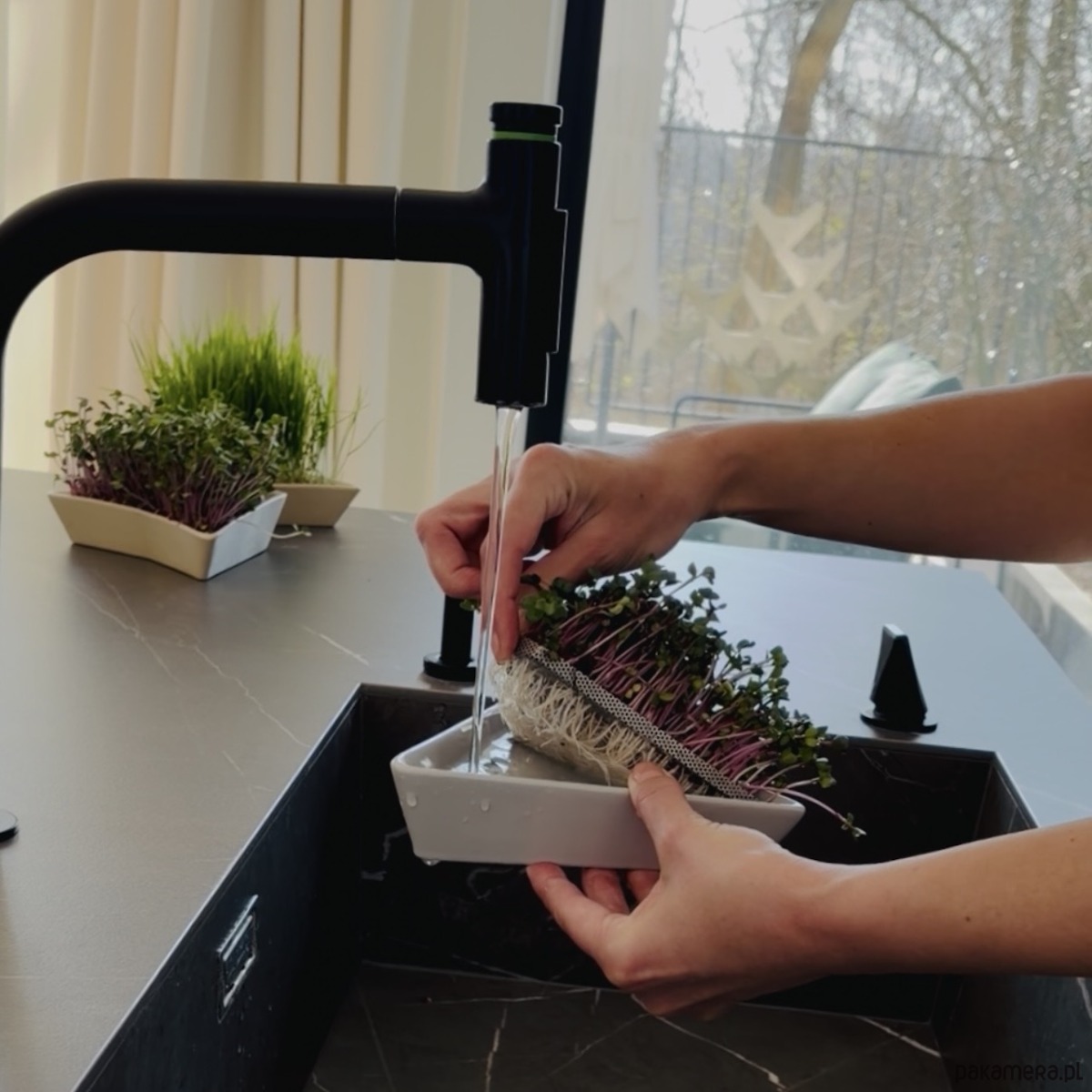 Do zestawu dołączone są BIO ZIARNA - zestaw zawiera 9 rodzajów nasion na kiełki: rukola 8g, gorczyca 8g, rzeżucha 8g, rzodkiewka 8g, amarantus 8g, słonecznik 8g, soja 8g, brokuł 8g, pszenica 8g. Data przydatności 12.2028r.
