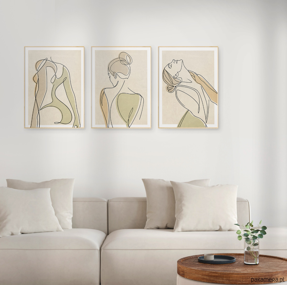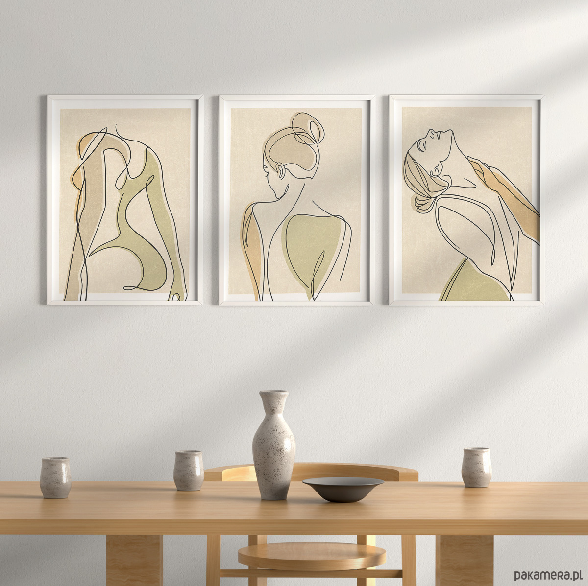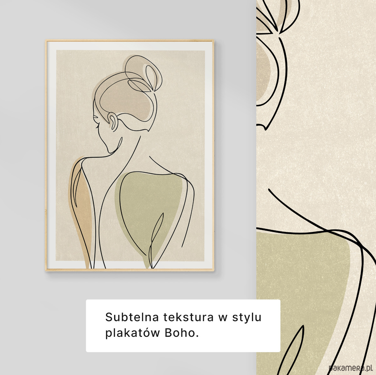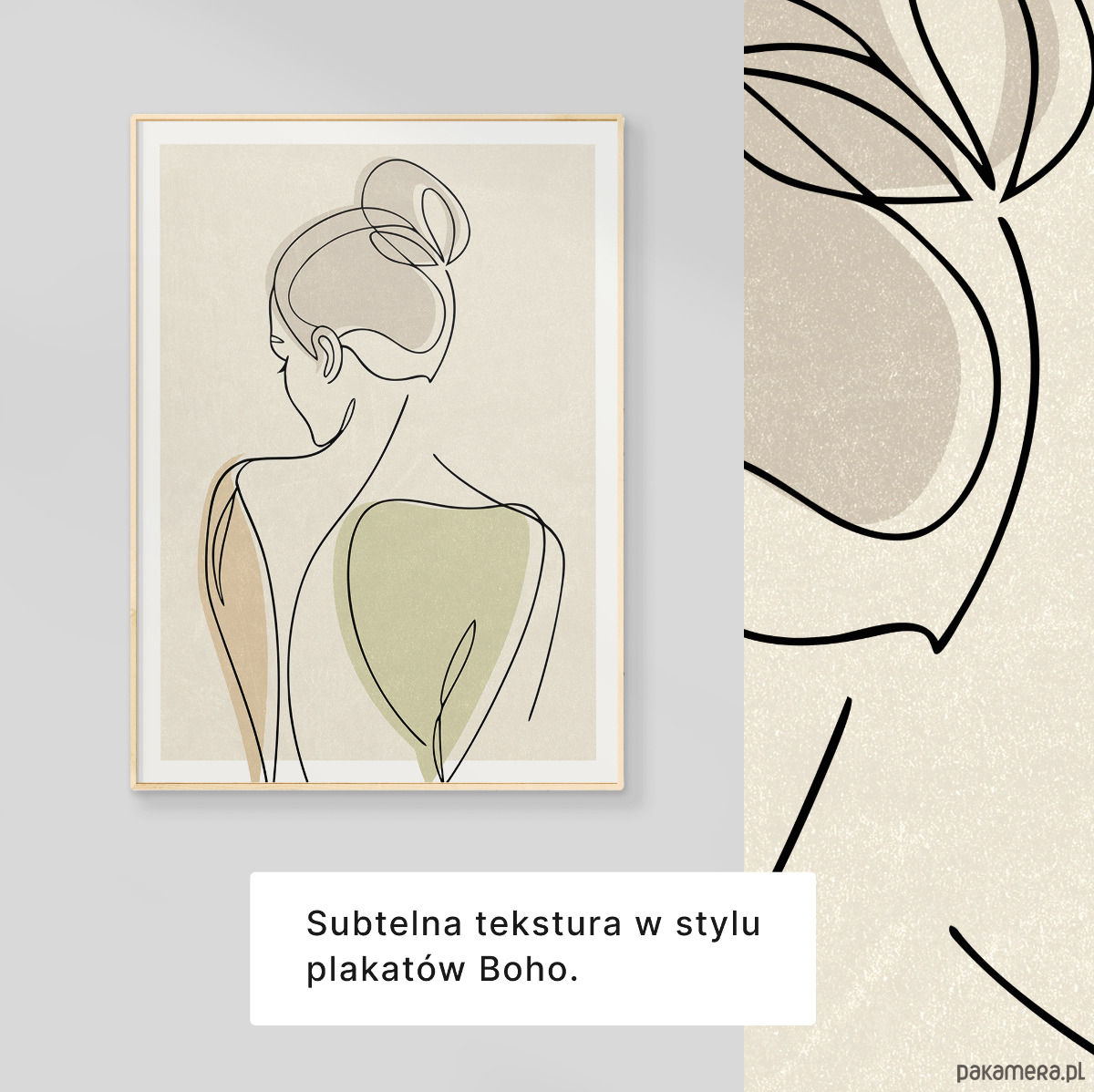 Zestaw trzech plakatów w popularnym stylu boho z motywem ciała kobiety. Minimalistyczny design, beżowa kolorystyka oraz delikatna tekstura to elementy, które doskonale podkreślają wyjątkowy charakter tego stylu.