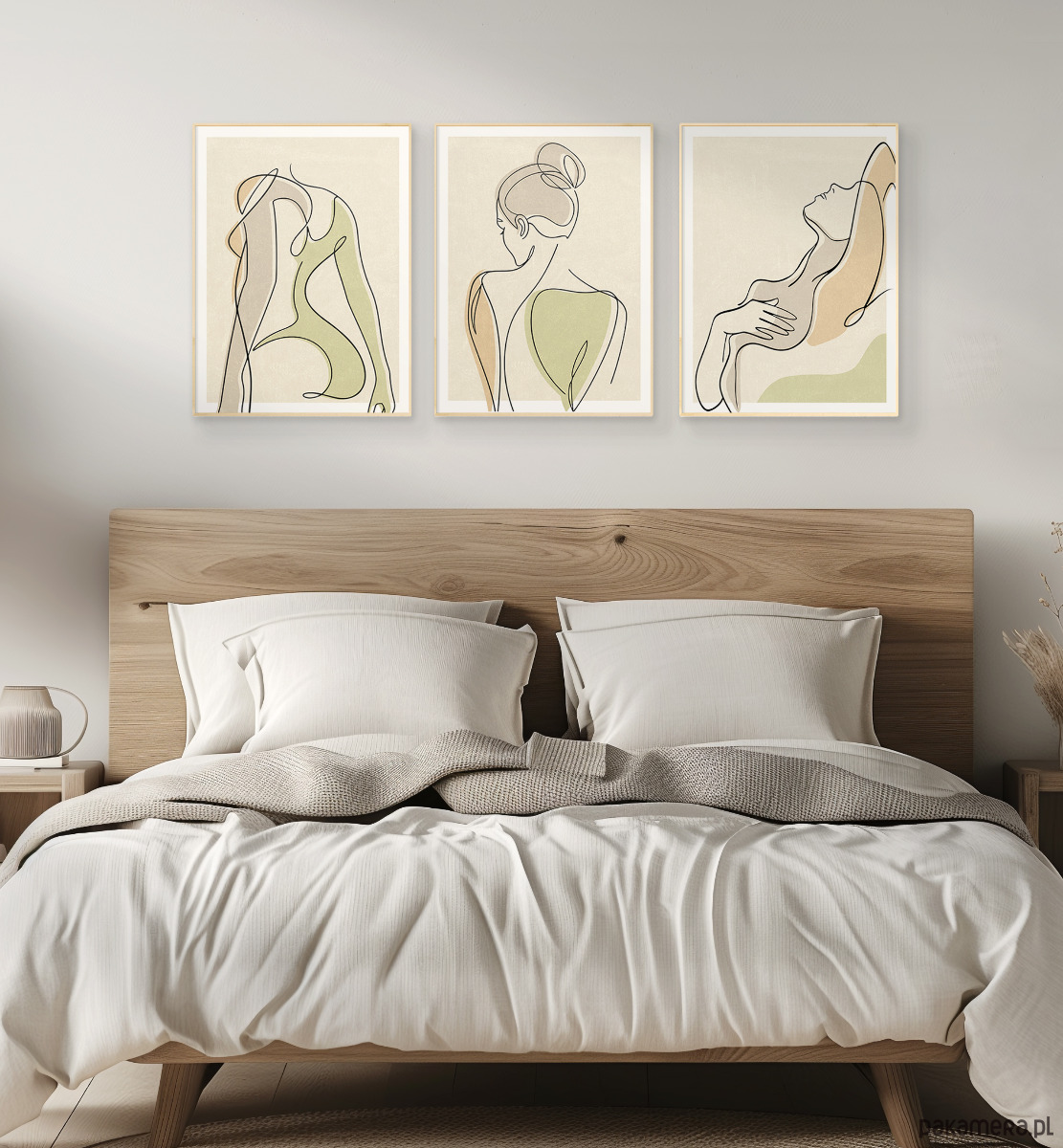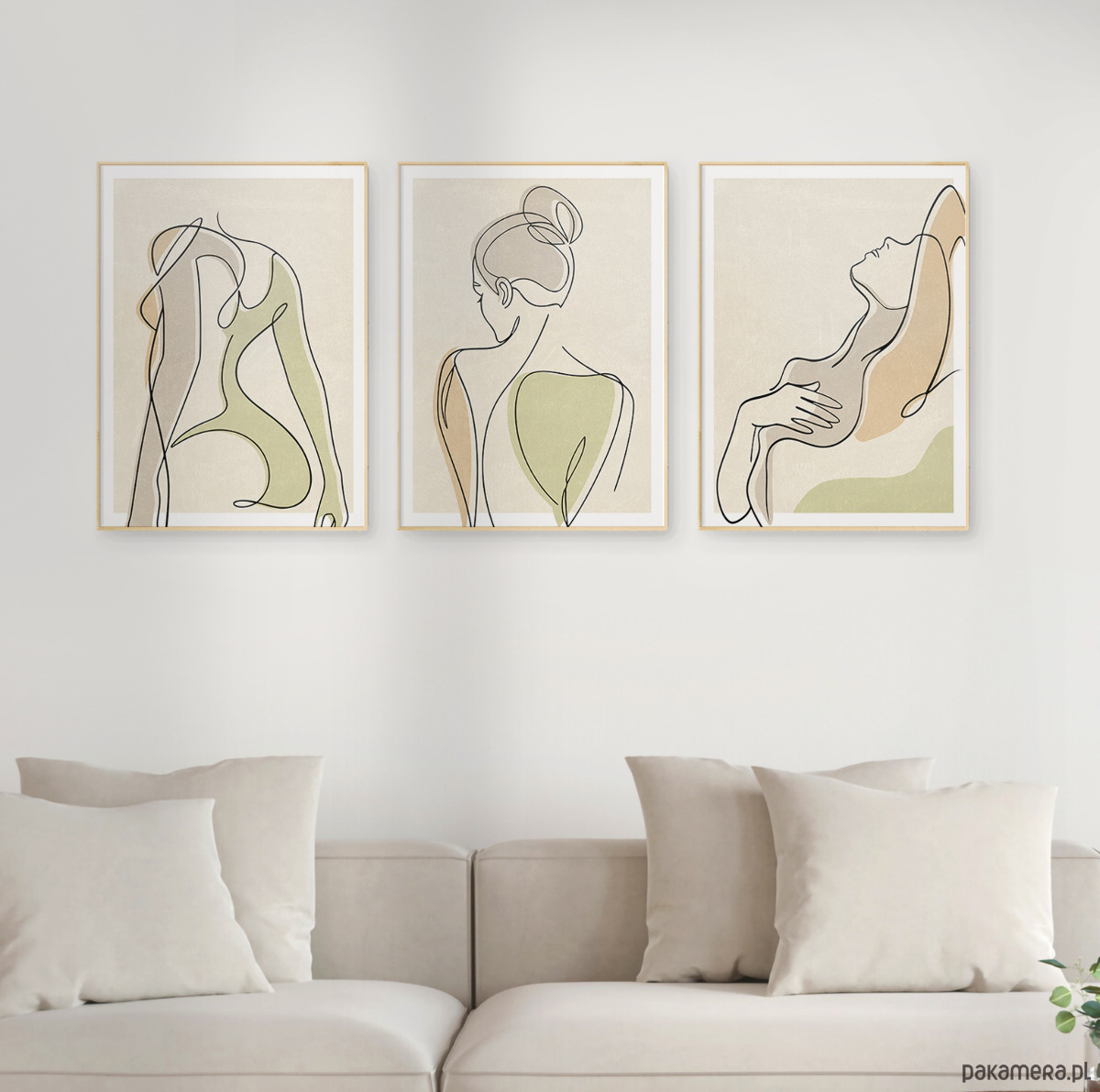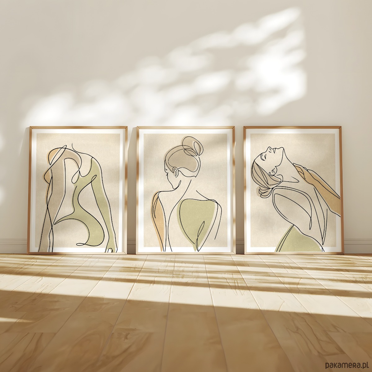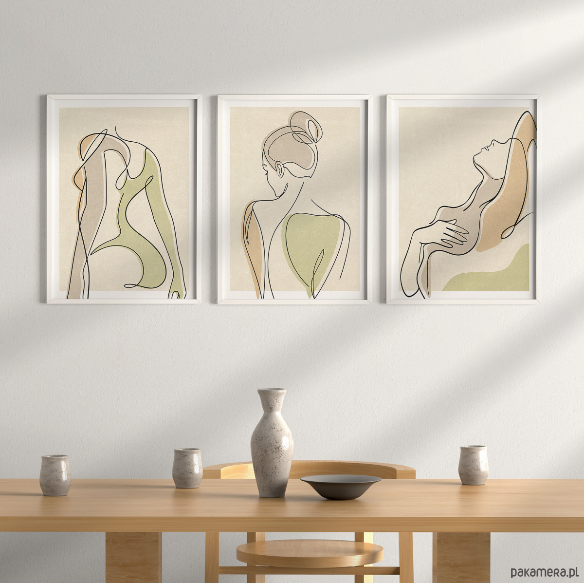 Zestaw trzech plakatów w popularnym stylu boho z motywem ciała kobiety. Minimalistyczny design, beżowa kolorystyka oraz delikatna tekstura to elementy, które doskonale podkreślają wyjątkowy charakter tego stylu.