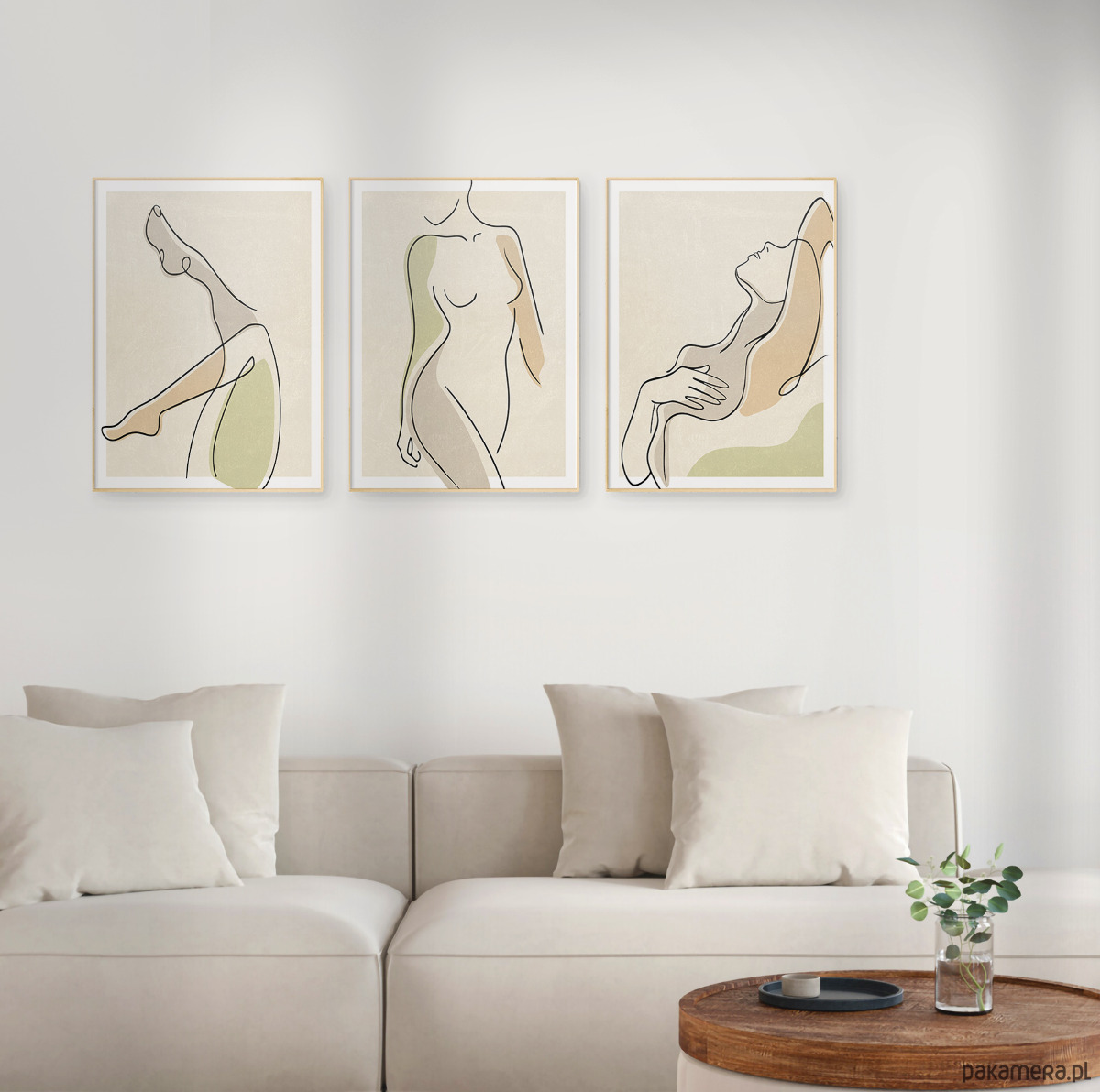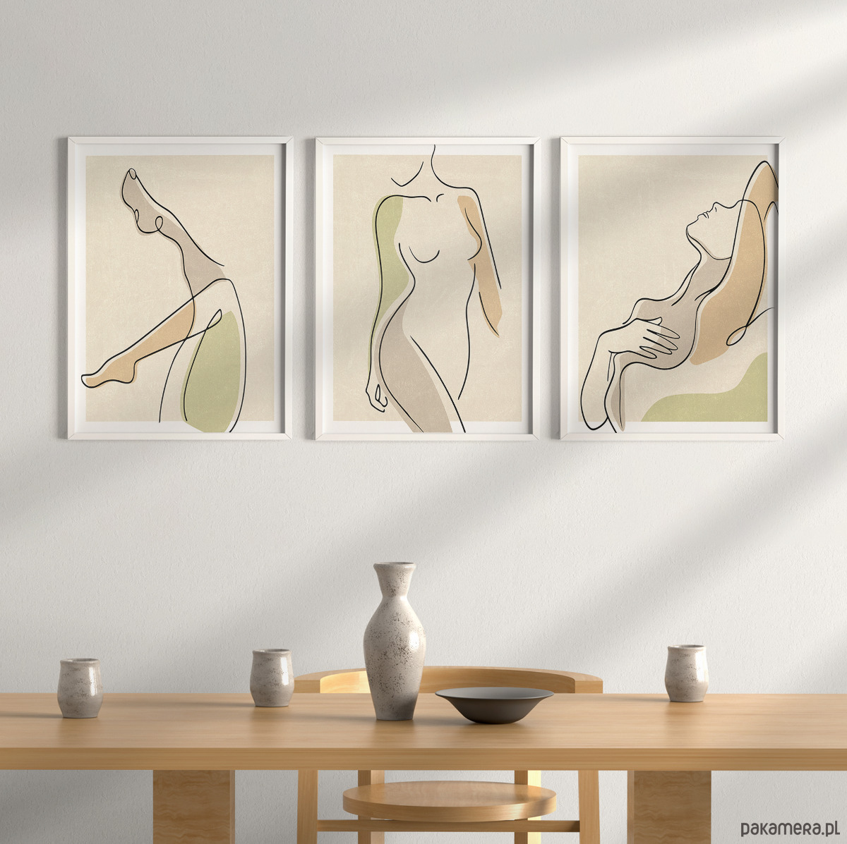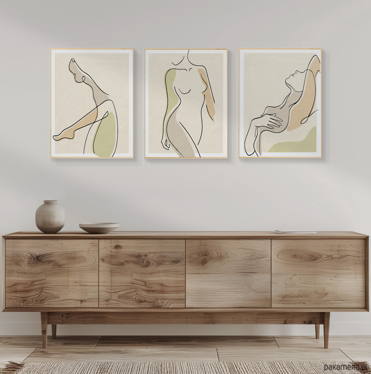 Zestaw trzech plakatów w popularnym stylu boho z motywem ciała kobiety. Minimalistyczny design, beżowa kolorystyka oraz delikatna tekstura to elementy, które doskonale podkreślają wyjątkowy charakter tego stylu.