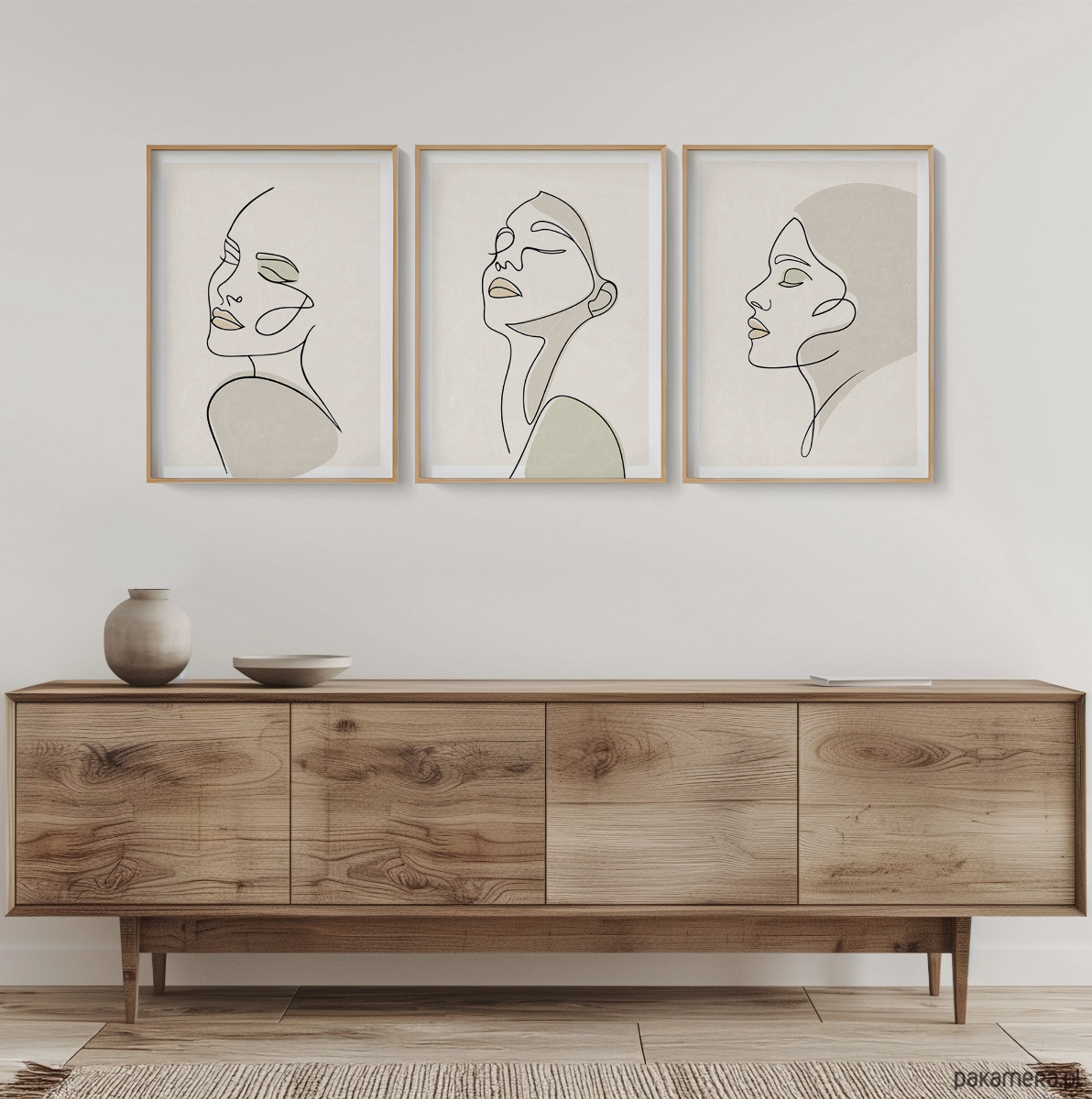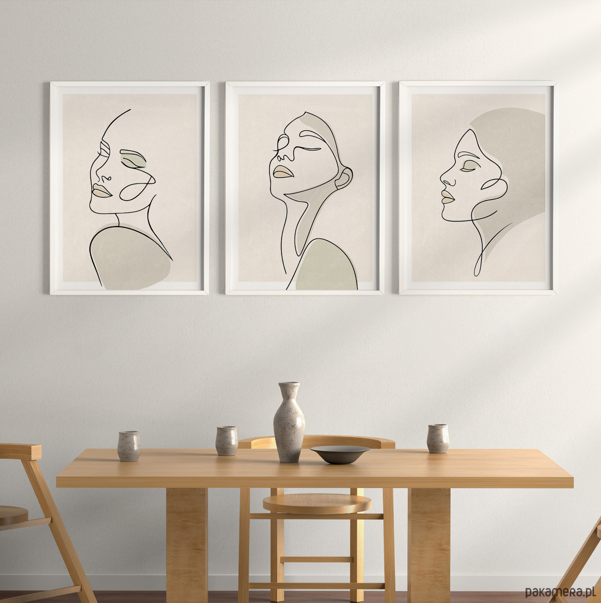 Zestaw trzech plakatów w popularnym stylu boho z motywem twarzy kobiety. Minimalistyczny design, beżowa kolorystyka oraz delikatna tekstura to elementy, które doskonale podkreślają wyjątkowy charakter tego stylu.