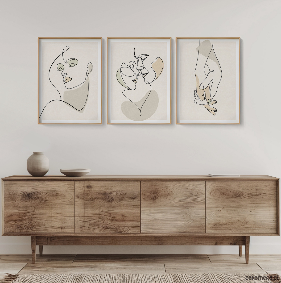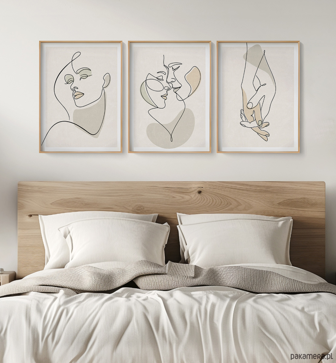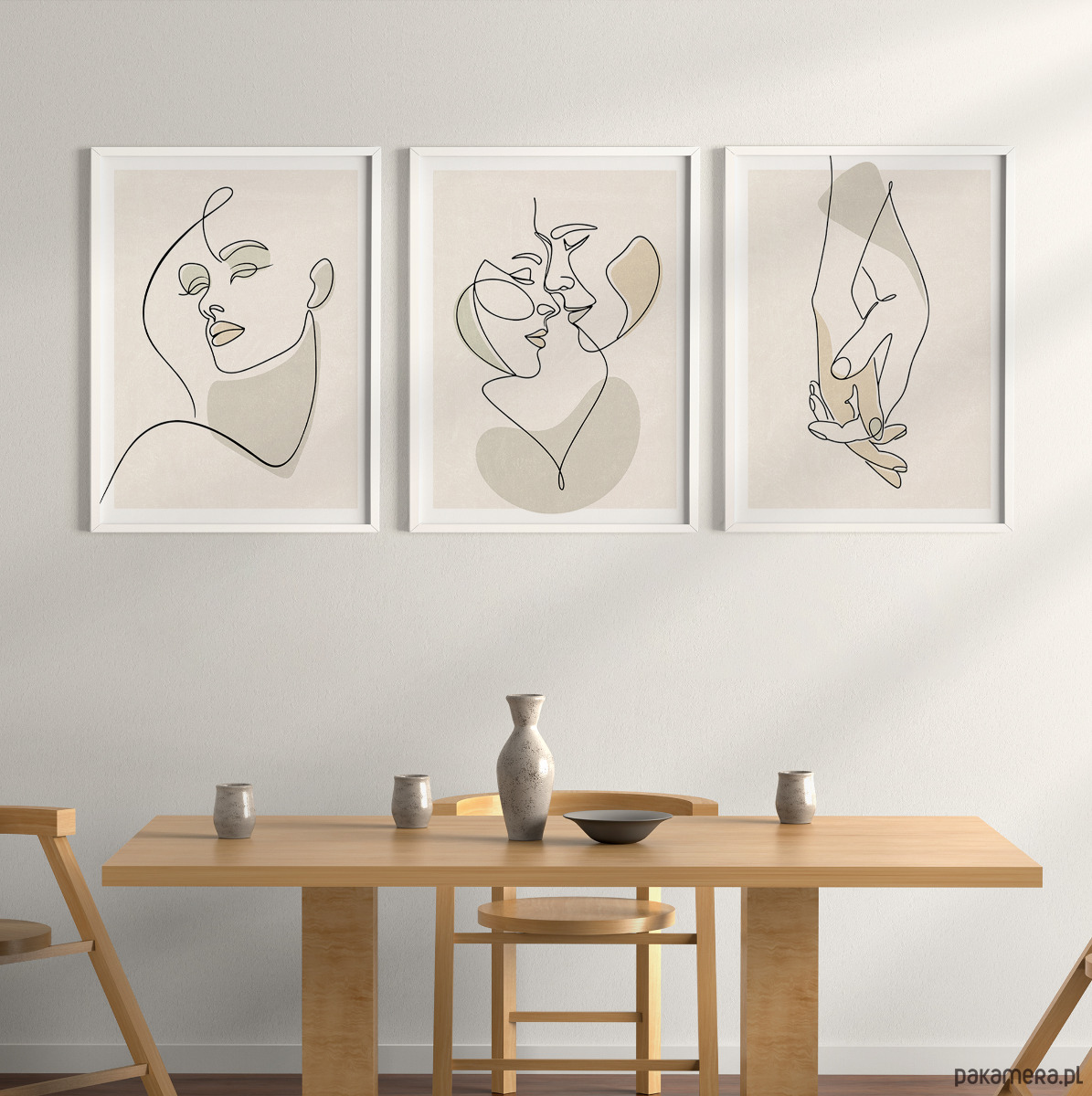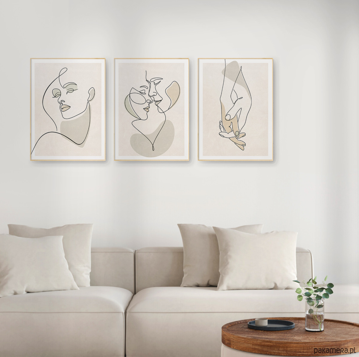 Zestaw trzech plakatów w popularnym stylu boho z motywem kobiety oraz pary. Minimalistyczny design, beżowa kolorystyka oraz delikatna tekstura to elementy, które doskonale podkreślają wyjątkowy charakter tego stylu.