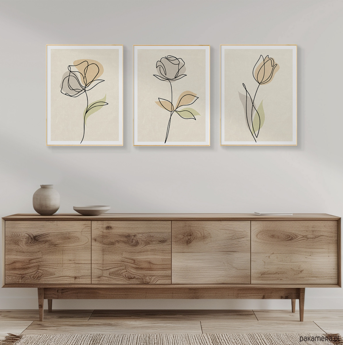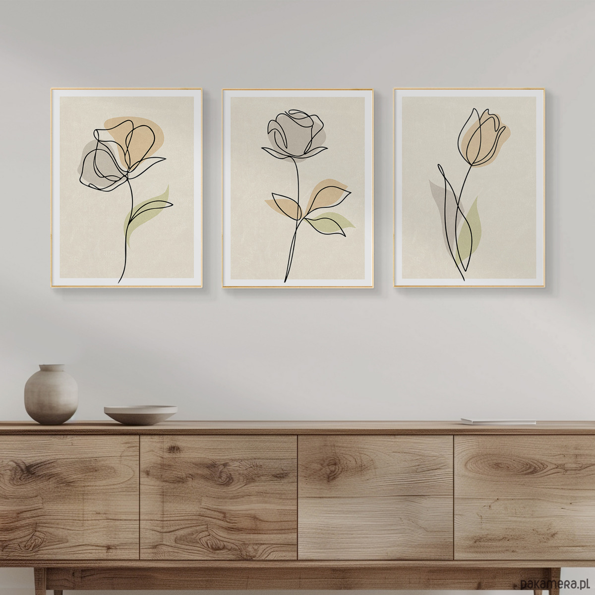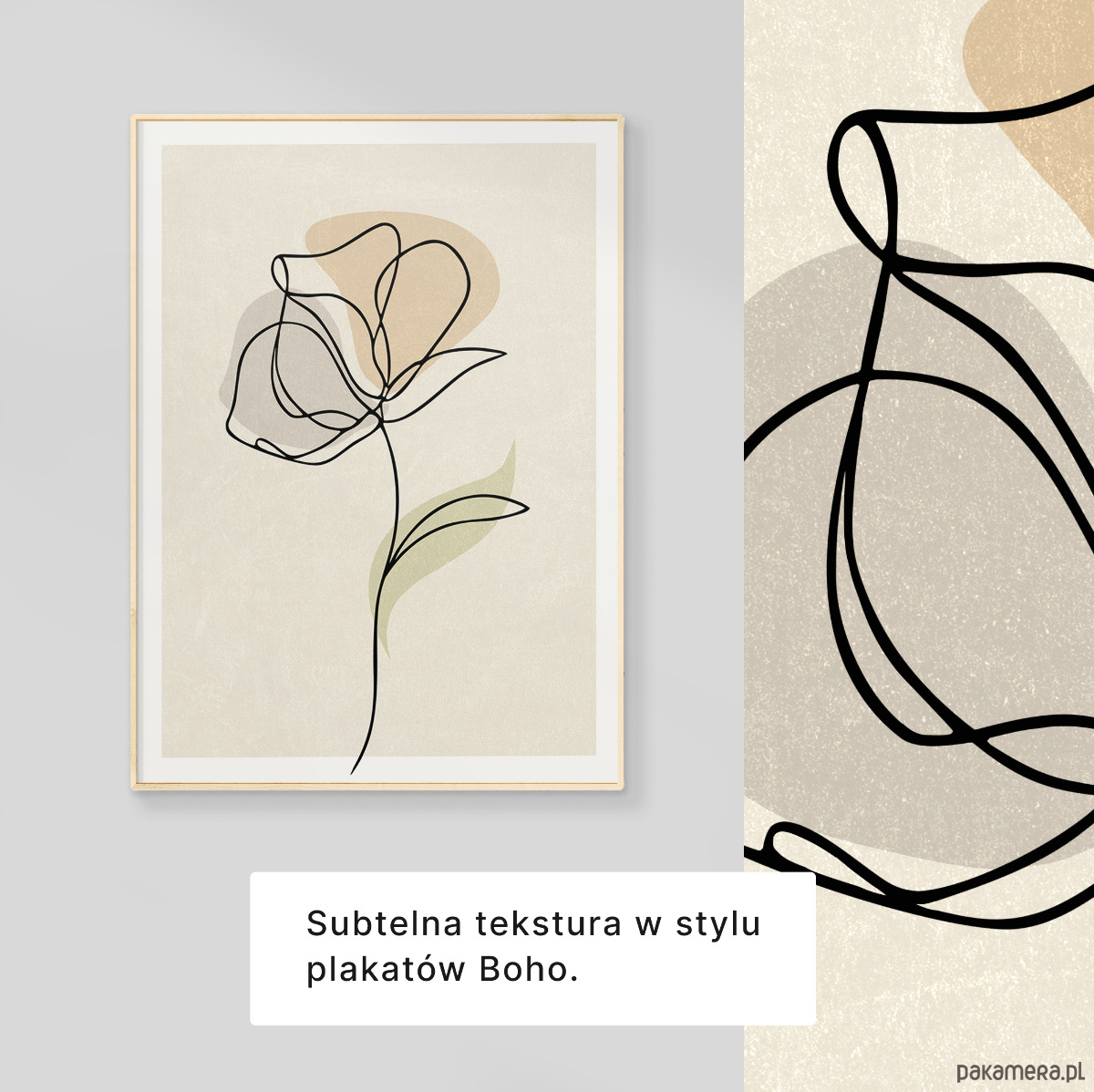 Zestaw trzech plakatów w popularnym stylu boho z motywem kwiatów. Minimalistyczny design, beżowa kolorystyka oraz delikatna tekstura to elementy, które doskonale podkreślają wyjątkowy charakter tego stylu.