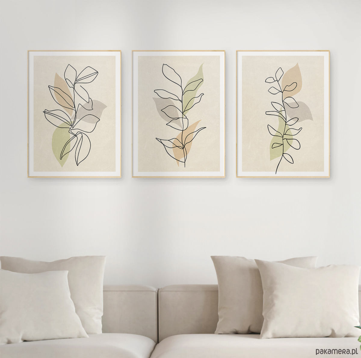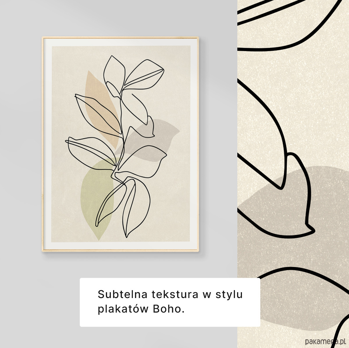 Zestaw trzech plakatów w popularnym stylu boho z motywem roślin. Minimalistyczny design, beżowa kolorystyka oraz delikatna tekstura to elementy, które doskonale podkreślają wyjątkowy charakter tego stylu.
