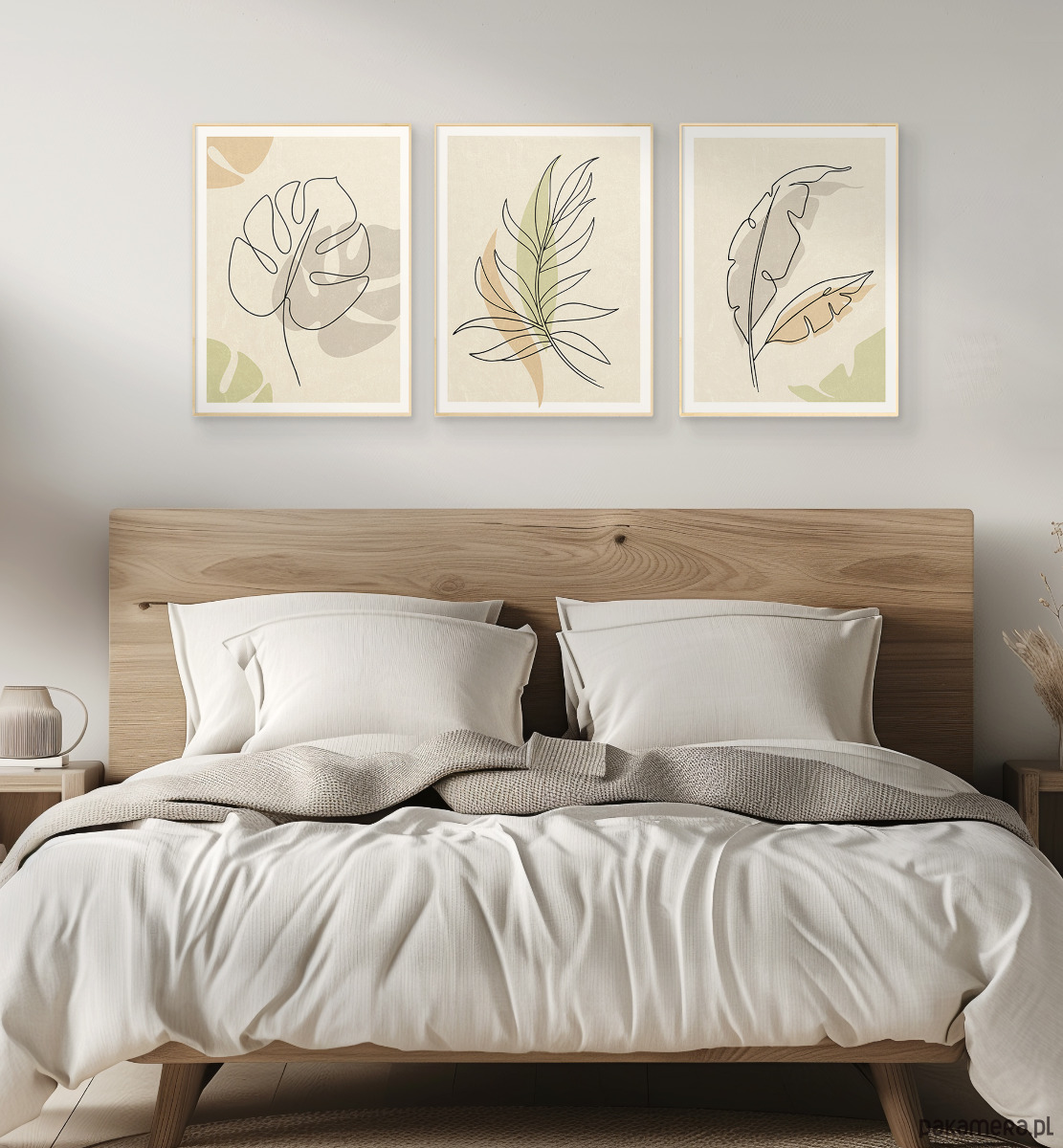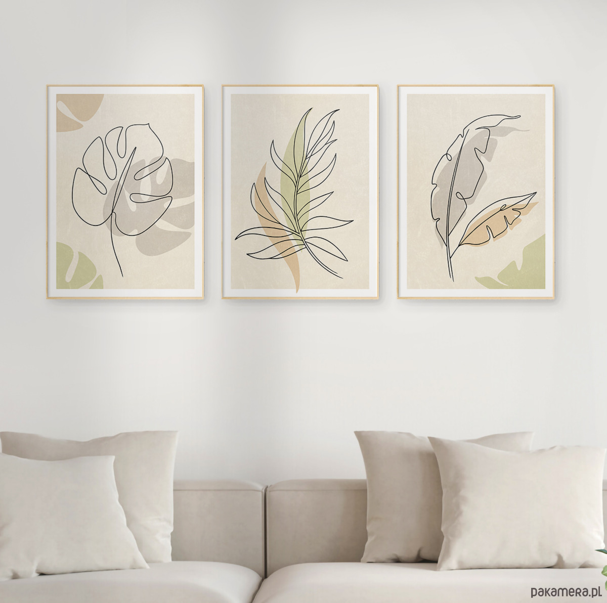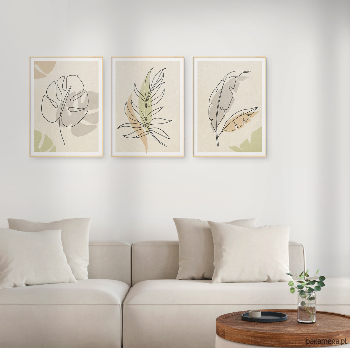 Zestaw trzech plakatów w popularnym stylu boho z motywem roślin. Minimalistyczny design, beżowa kolorystyka oraz delikatna tekstura to elementy, które doskonale podkreślają wyjątkowy charakter tego stylu.