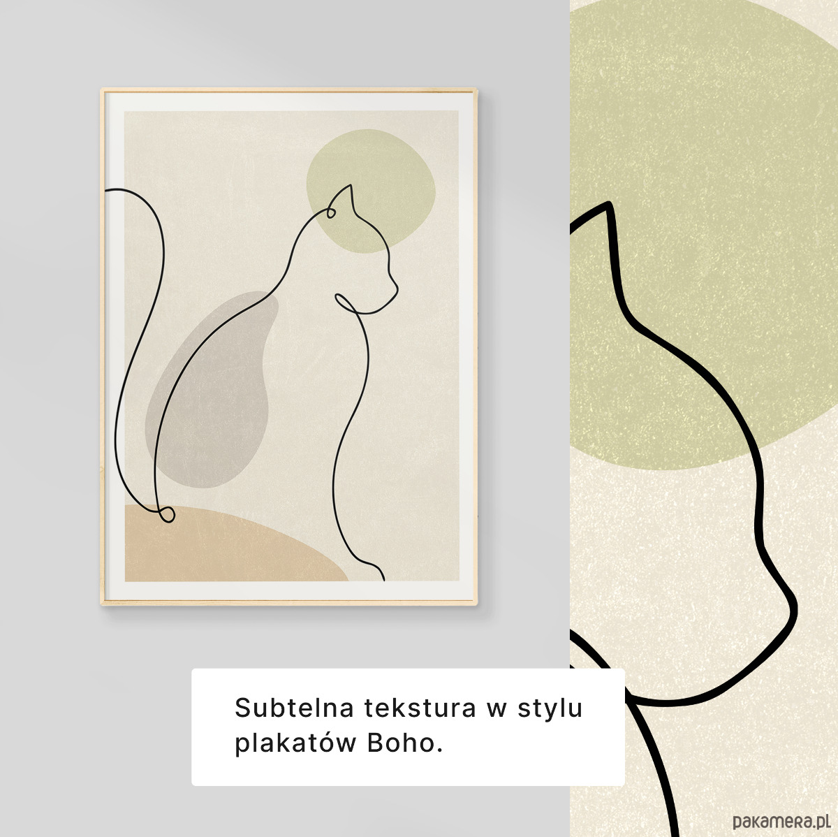 Zestaw trzech plakatów w popularnym stylu boho z motywem kota:) Minimalistyczny design, beżowa kolorystyka oraz delikatna tekstura to elementy, które doskonale podkreślają wyjątkowy charakter tego stylu.