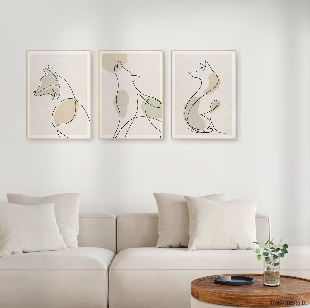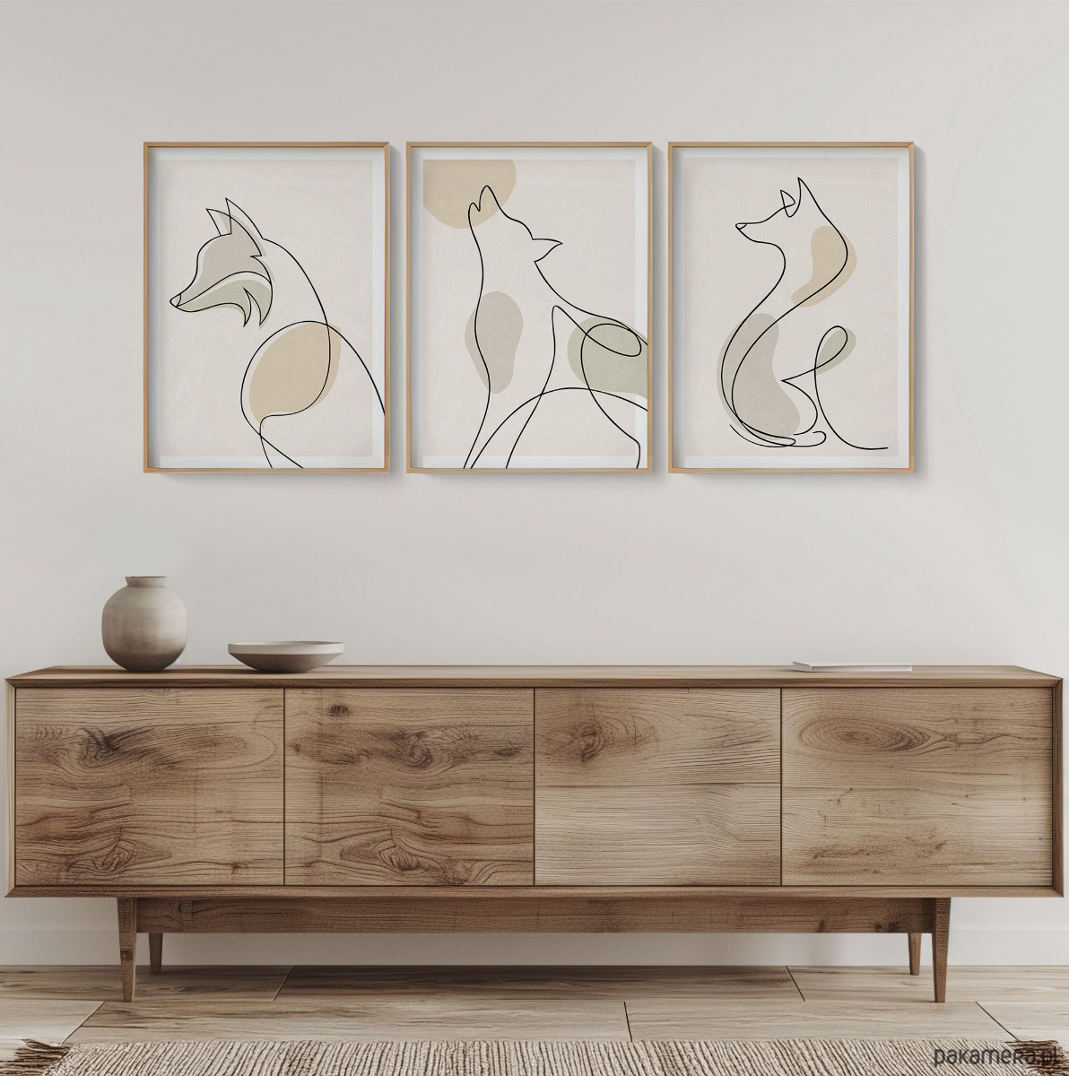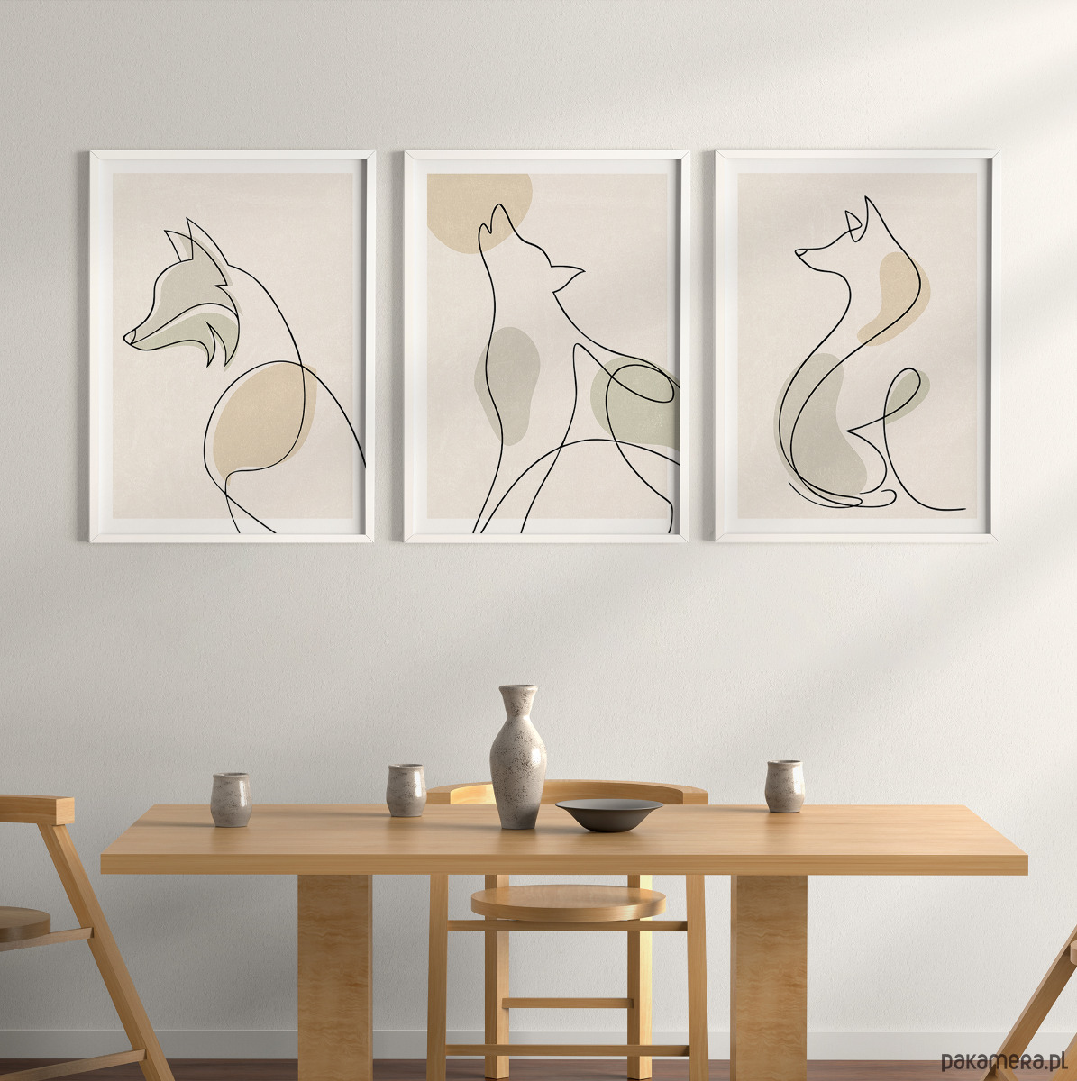 Zestaw trzech plakatów w popularnym stylu boho z motywem psa / wilka. Minimalistyczny design, beżowa kolorystyka oraz delikatna tekstura to elementy, które doskonale podkreślają wyjątkowy charakter tego stylu.
