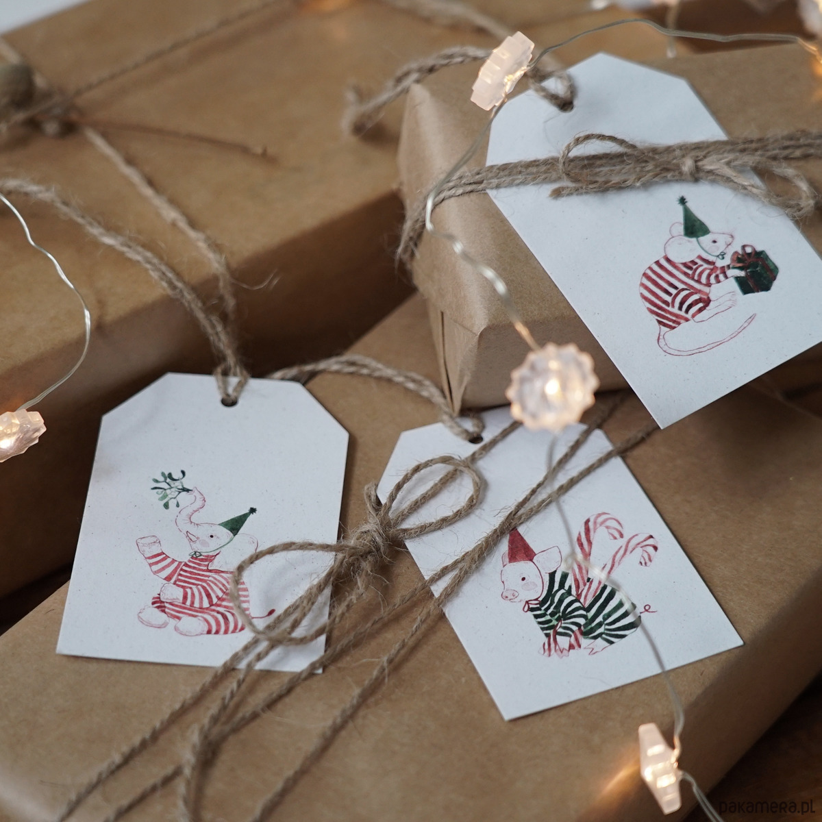 Zestaw 3 zawieszek do prezentów świątecznych (słoń, myszka, świnka)