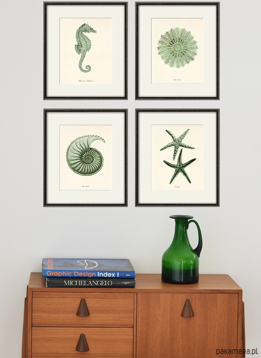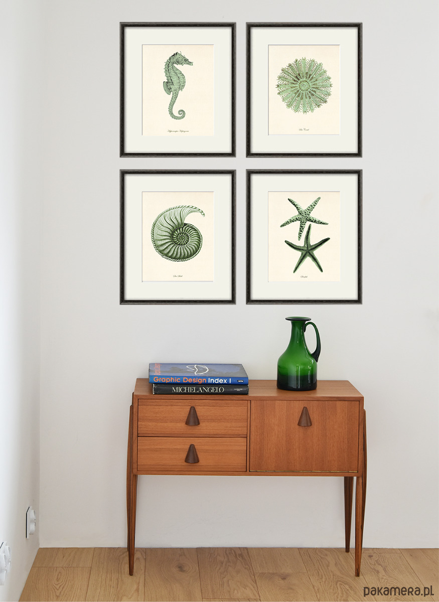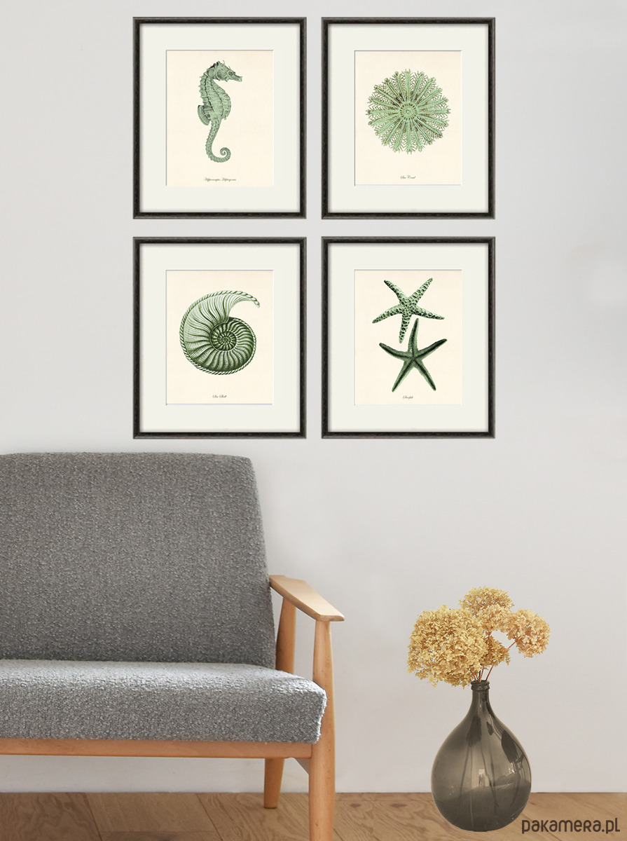 Zestaw 4 grafik koralowiec reprodukcja morskie Zielony