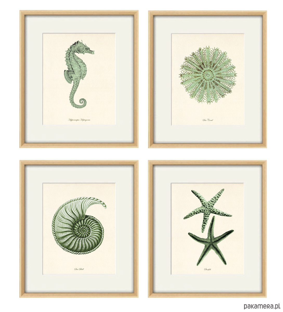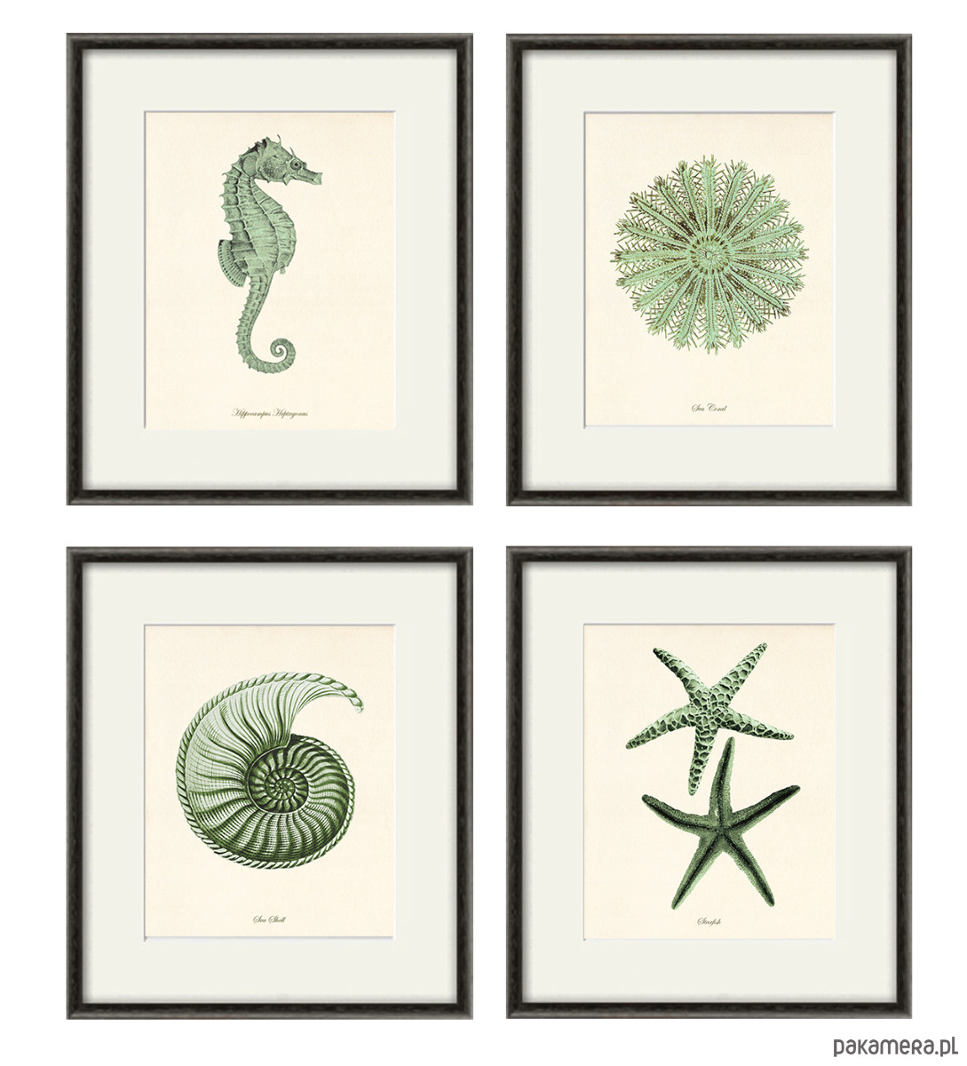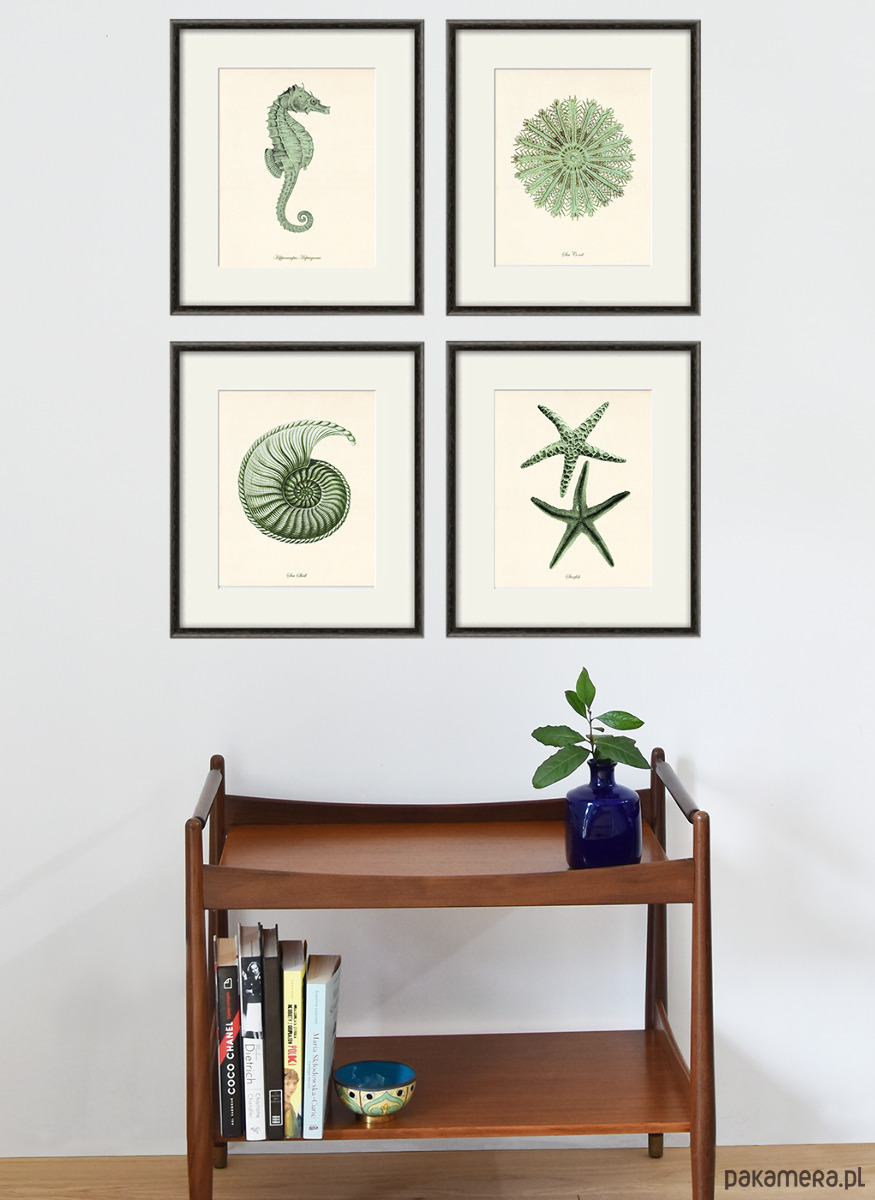 Zestaw 4 grafik koralowiec reprodukcja morskie Zielony
