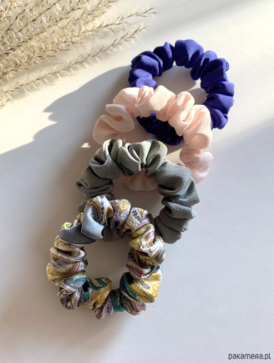 Zestaw 4 jedwabnych gumek scrunchies w wersji mini to zestaw idealny dla miłośniczek delikatnych akcentów.
