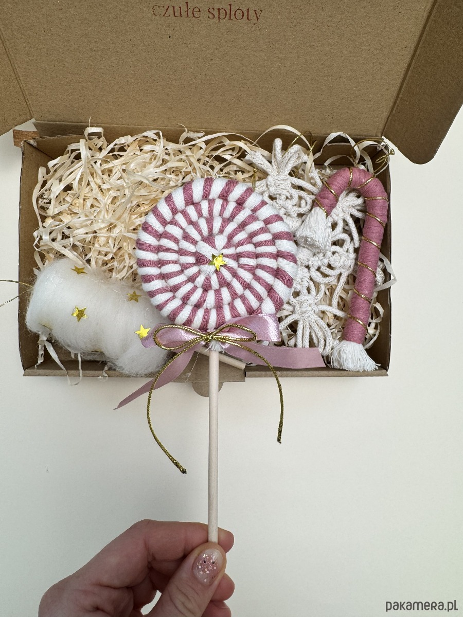 Makramowy lollipop – idealny do zawieszenia na choince.