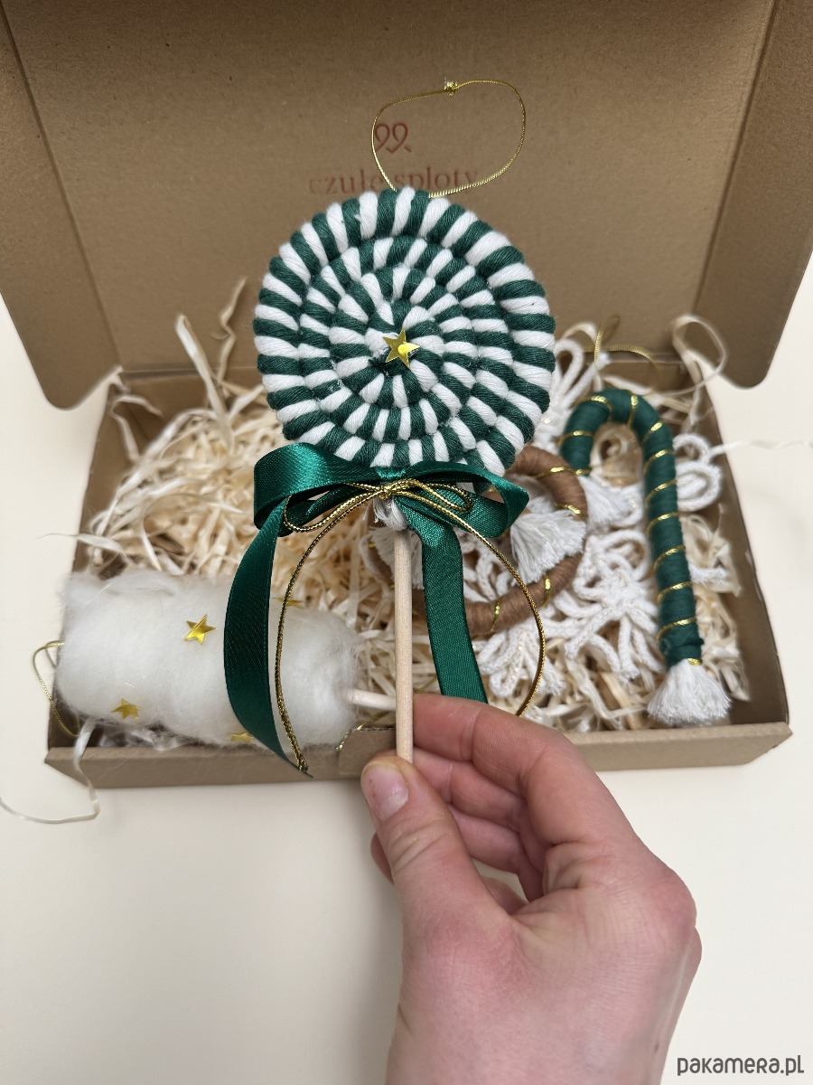Makramowy lollipop – idealny do zawieszenia na choince.