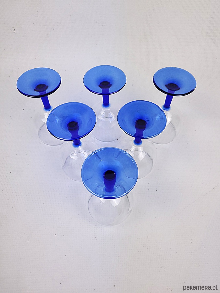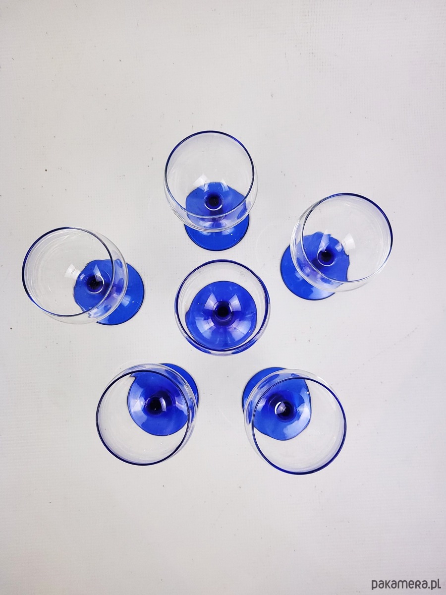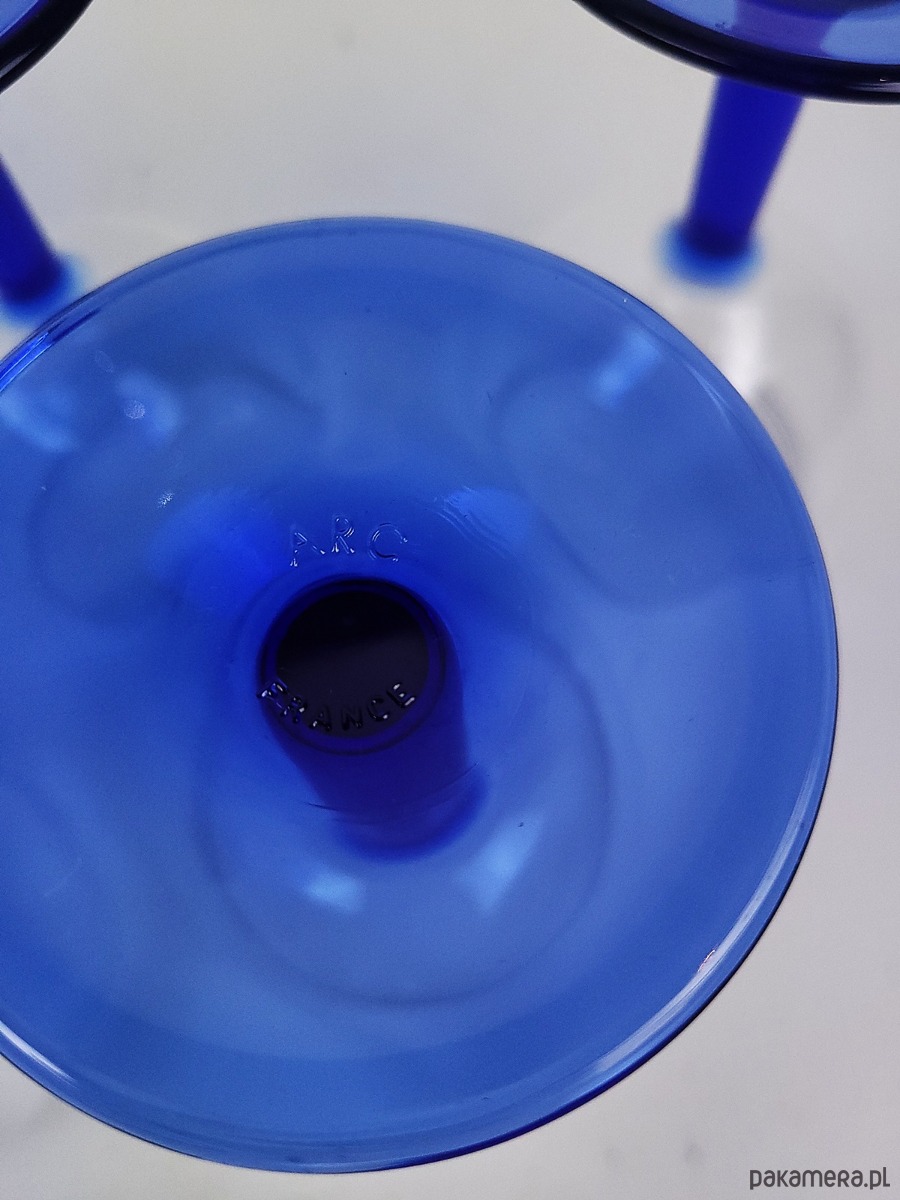 Kultowe kieliszki Luminarc France – Kobaltowy Vintage z lat 80.Zapraszamy do odkrycia prawdziwej ikony francuskiego designu użytkowego. Prezentujemy zestaw kieliszków marki Luminarc, pochodzący z przełomu lat 80. i 90. XX wieku. To propozycja dla osób, które cenią przedmioty z duszą i chcą wprowadzić do swojej jadalni wyjątkowy klimat retro.Projekt zachwyca eleganckim kontrastem. Przezroczysta, pękata czasza o klasycznym kształcie została osadzona na smukłej nóżce w głębokim, kobaltowym kolorze. Ten intensywny odcień błękitu sprawia, że szkło pięknie pracuje ze światłem, stając się główną ozdobą każdego stołu.Kieliszki zostały wykonane we Francji z wysokiej jakości szkła hartowanego, co gwarantuje im trwałość mimo upływu dekad. Są niezwykle uniwersalne – ich pojemność i forma pozwalają na serwowanie wina czerwonego, białego, a także wody czy fantazyjnych koktajli. Oferowany komplet zachowany jest w bardzo dobrym stanie vintage. Szkło pozostaje klarowne i błyszczące, bez żadnych uszczerbień czy pęknięć. Naturalne dla przedmiotów z tego okresu minimalne ślady czasu jedynie potwierdzają ich autentyczność i historyczny charakter.