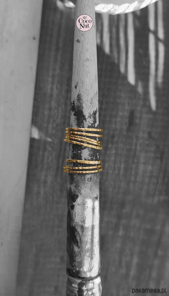 Komplet 6 cienkich młotkowanych (nierównych) obrączek z mosiądzu o szerokości ok. 1 mm, po zakupie prosimy podać rozmiar.