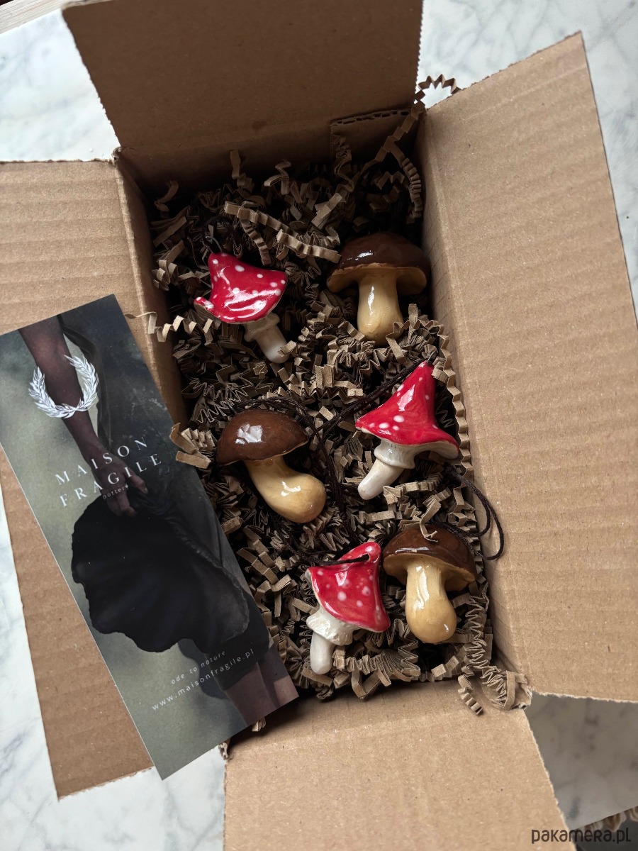 Grzybki pięknie podkreślą wyjątkowy klimat świątecznej atmosfery. Można je zawiesić zarówno na choince, jak i na dekoracyjnych gałązkach, wprowadzając radosny nastrój oraz dobry design.