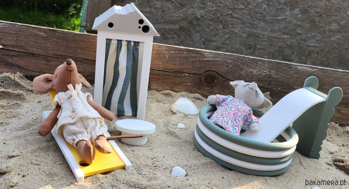 Przygotuj się na letnie przygody z naszym uroczym zestawem plażowym, idealnym dla małych lalek i myszek.