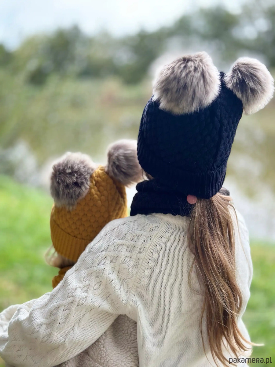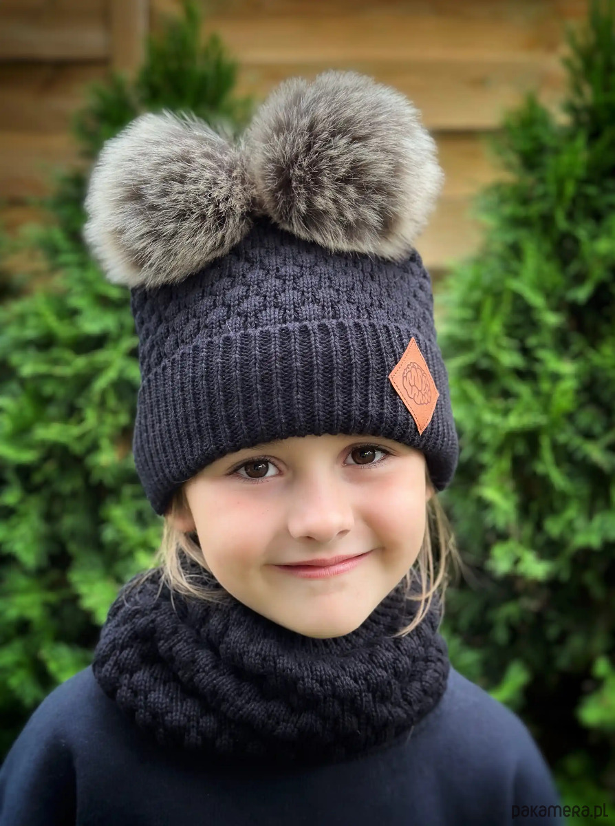 Bawełniana czapka dla dziecka z dwoma pomponami i komin w zestawie to coś, czego nie może zabraknąć w szafie Twojej pociechy!