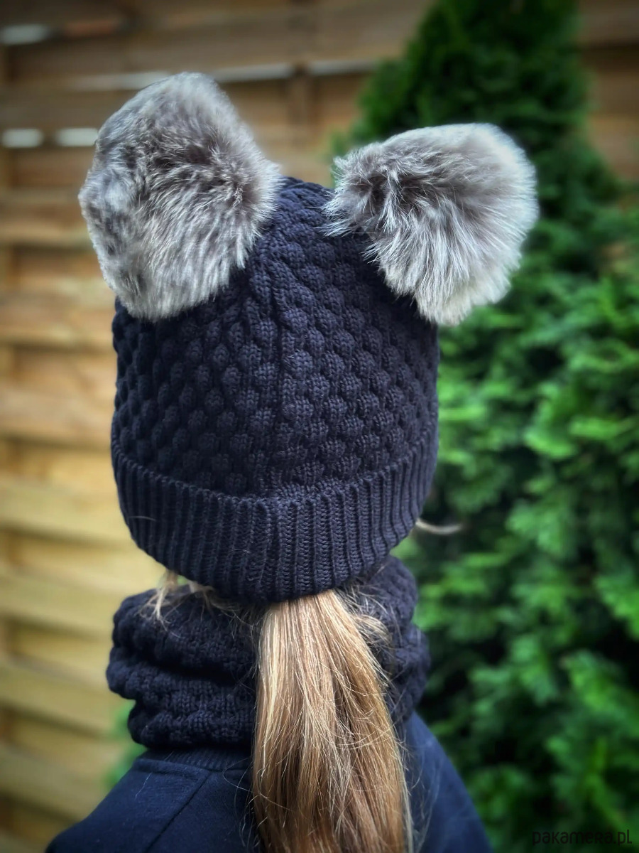 Wywinięcie czapki nadaje jej swobodny charakter, a pompony sprawiają, że ma "pazur". Pasujący do wzoru czapki komin dopełnia całość. Zatem praktyczność i modny design spotykają się tutaj w perfekcyjnej harmonii, tworząc niesamowity efekt w połączeniu z włochatymi pomponami.