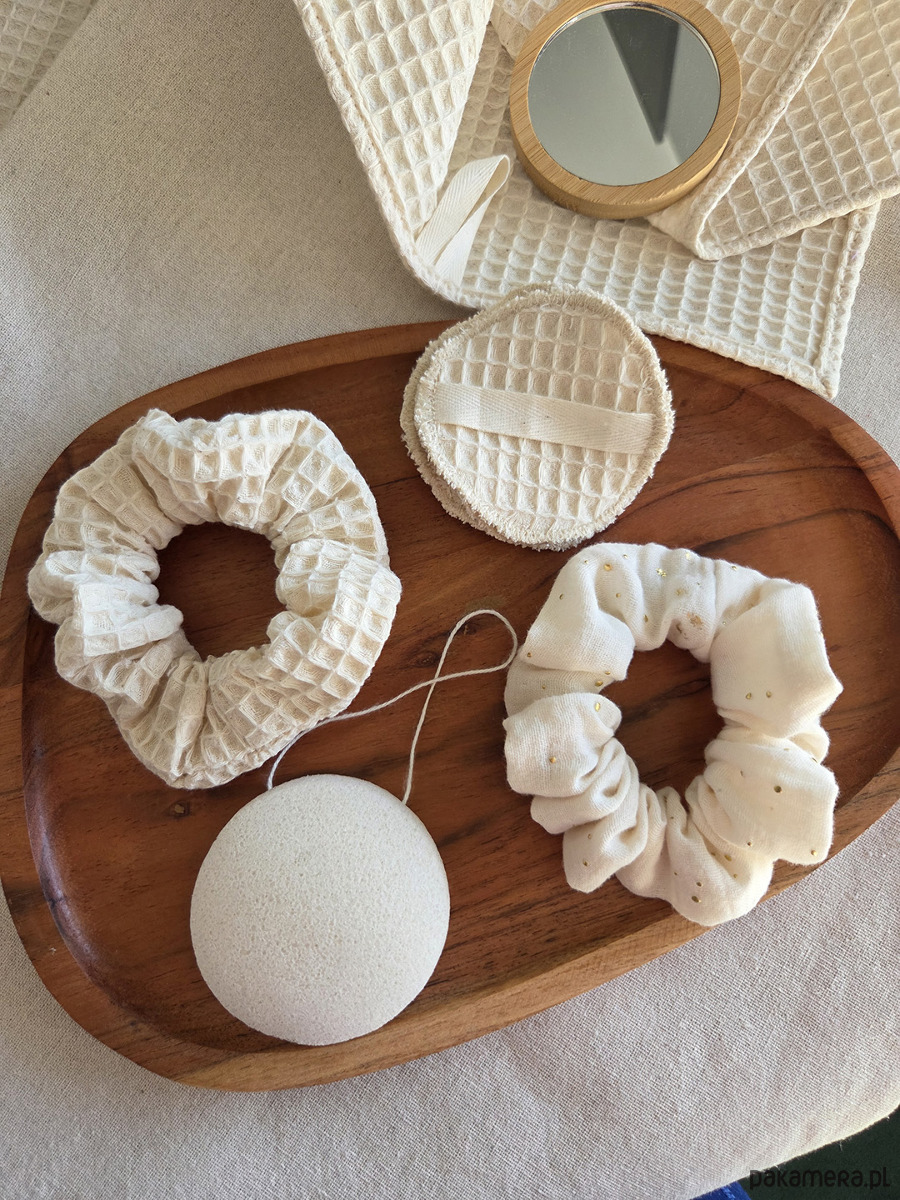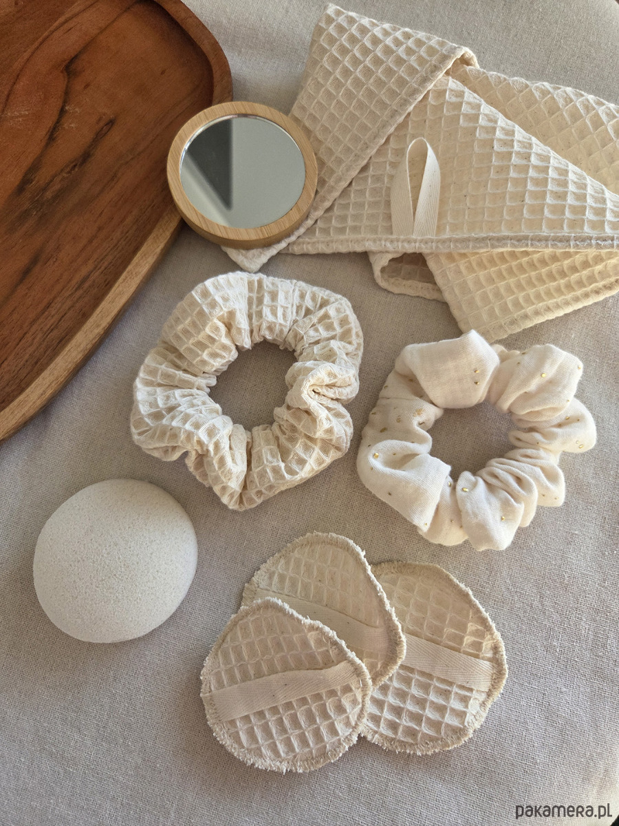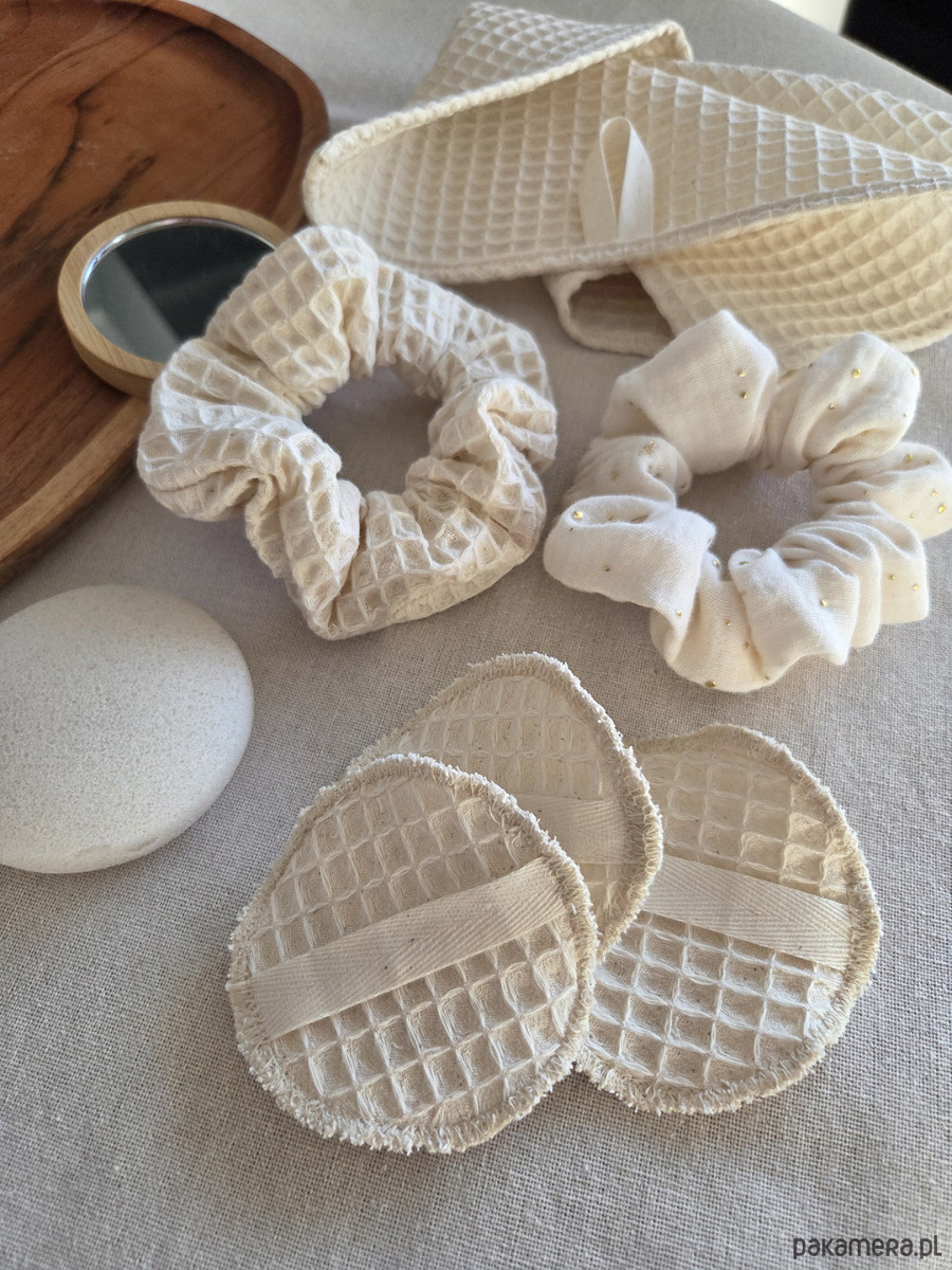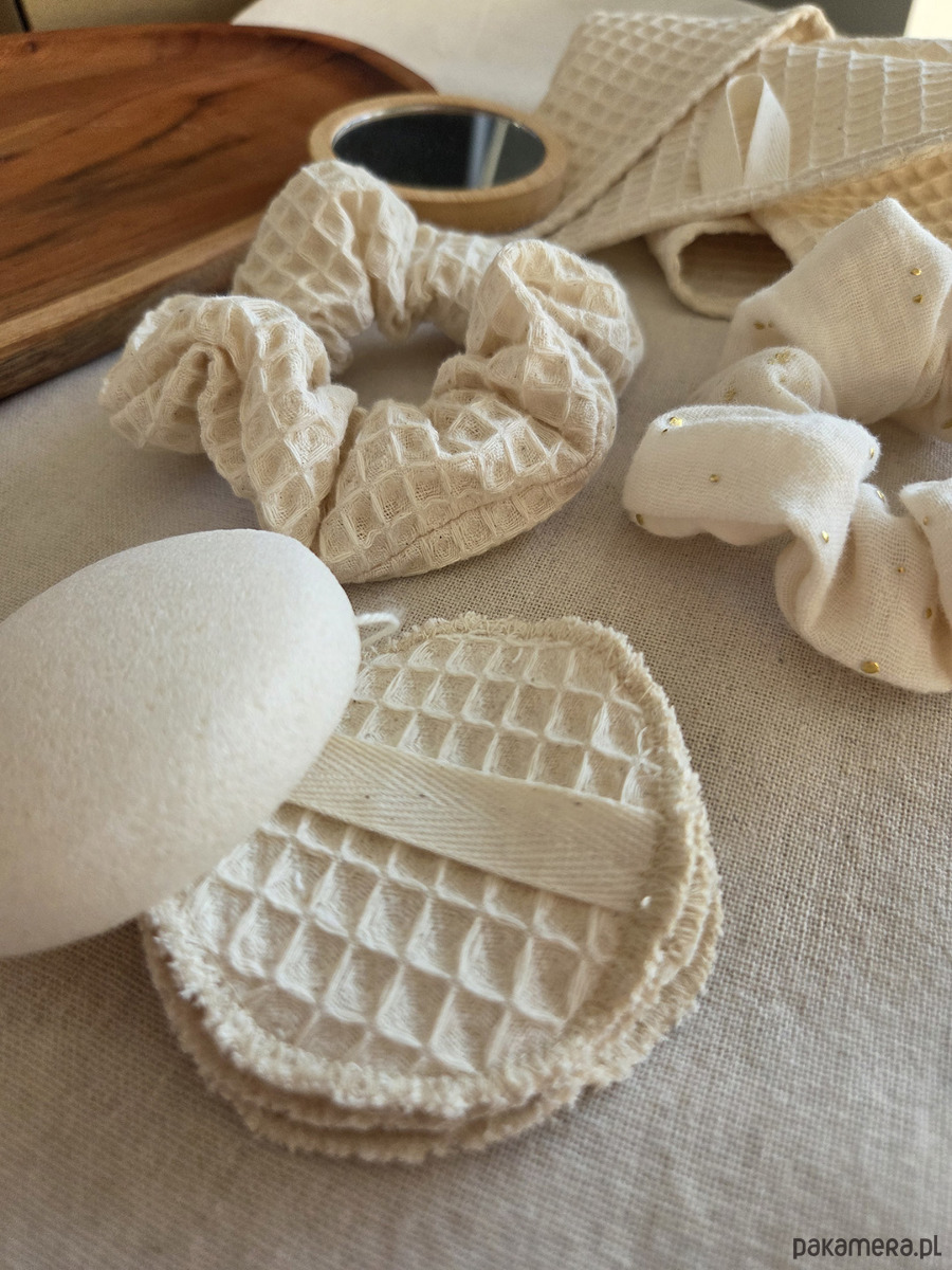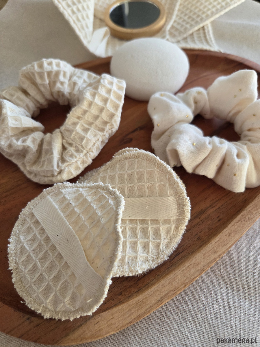 2. Scrunchie - 2 sztuki: waflekowa i muślinowa.