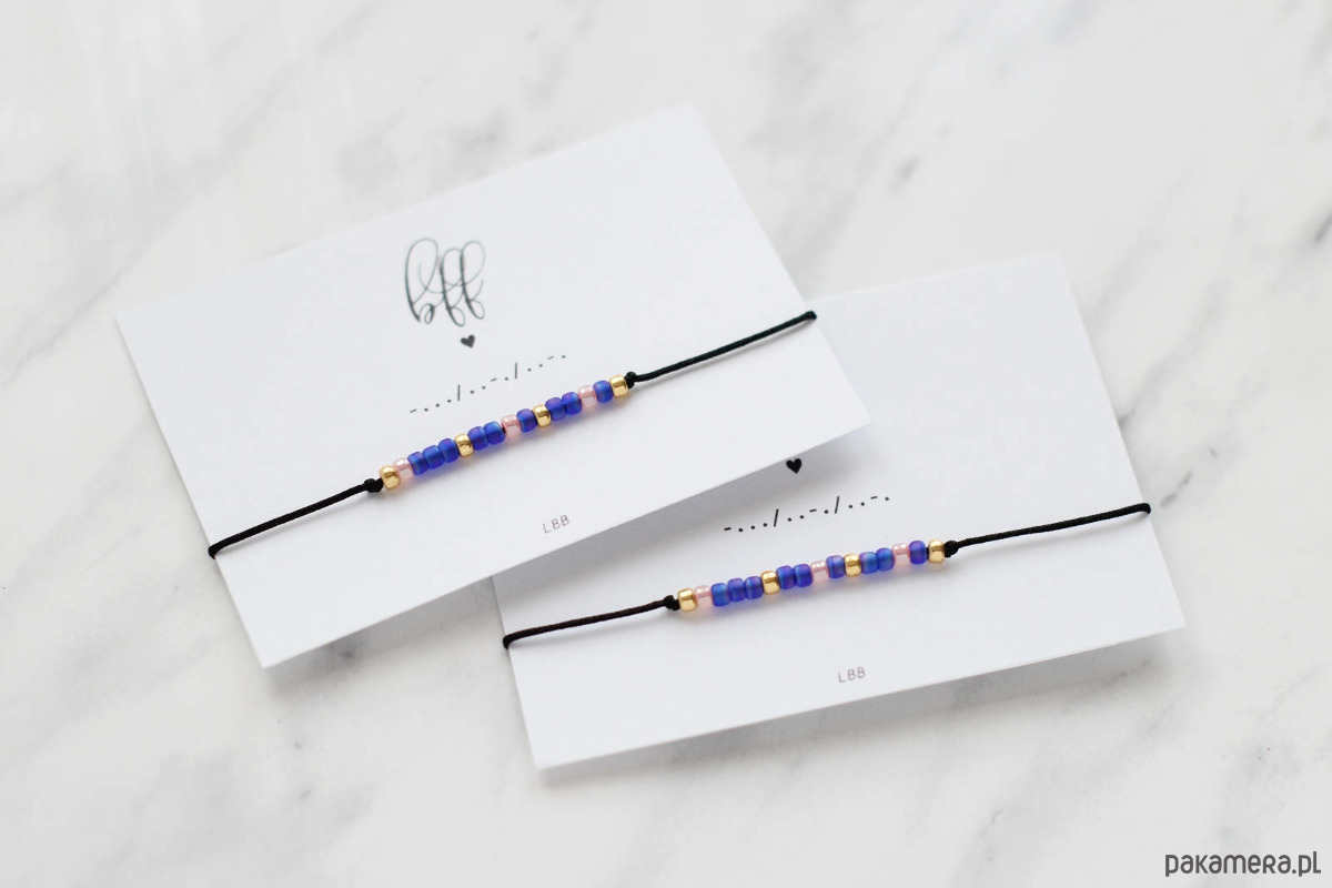 Zestaw dwóch delikatnych bransoletek z ukrytą wiadomością zapisaną alfabetem Morse'a.