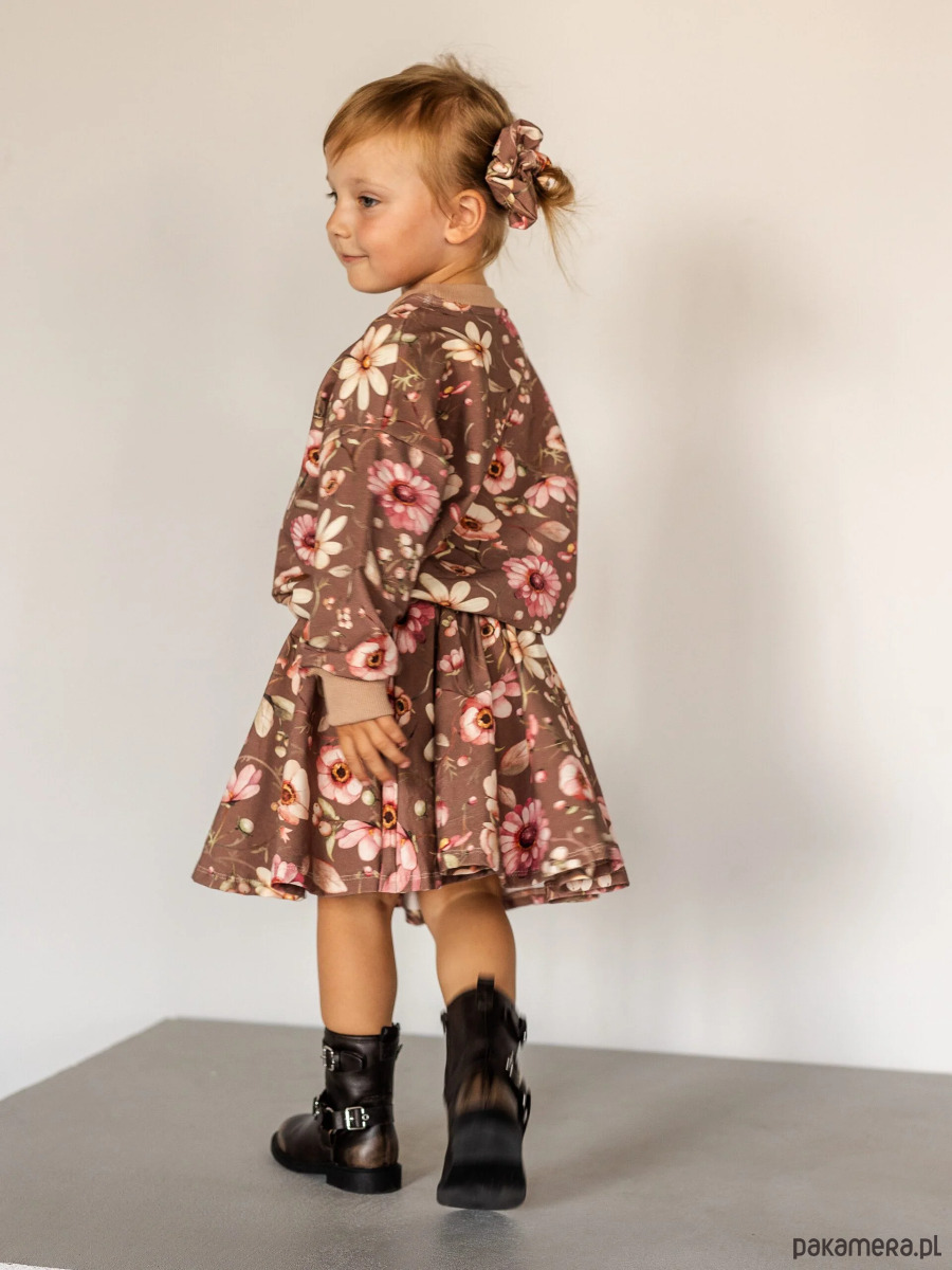 Stylowy design: Zestaw bluza matchy ze spódniczką AZALIA brąz dla dziewczynki w autorskim printem, które dodają uroku i charakteru.