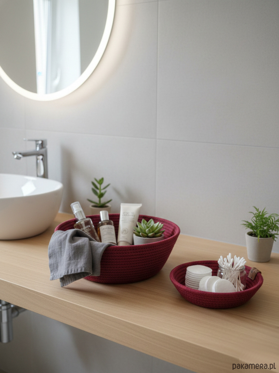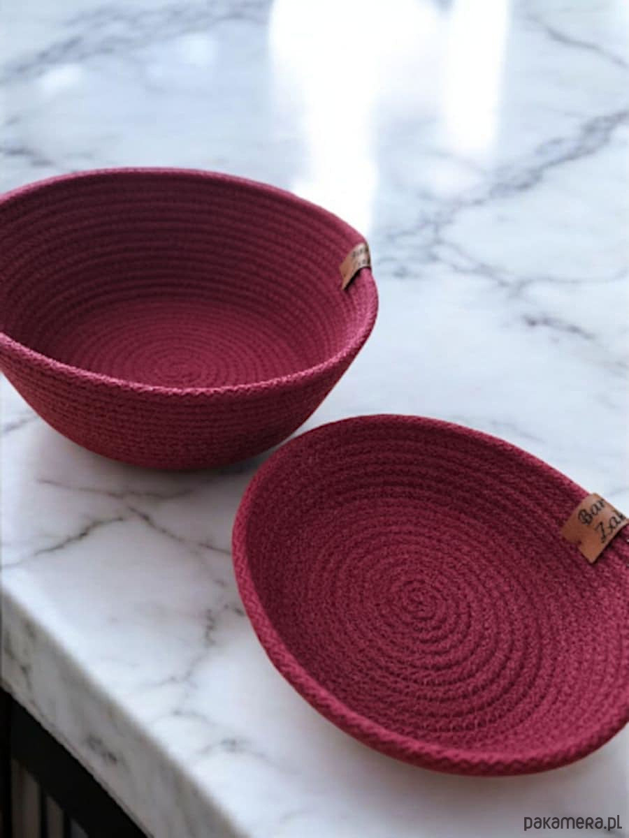 Zestaw bordowych koszyków ze sznurka rękodzieło na prezent