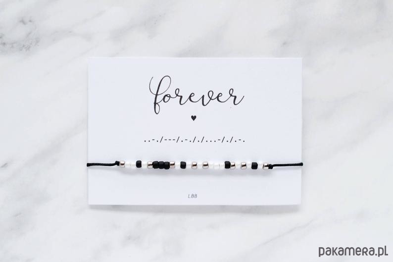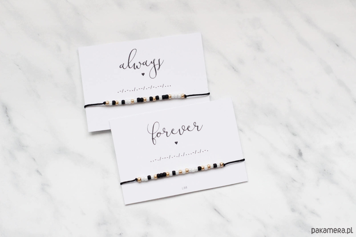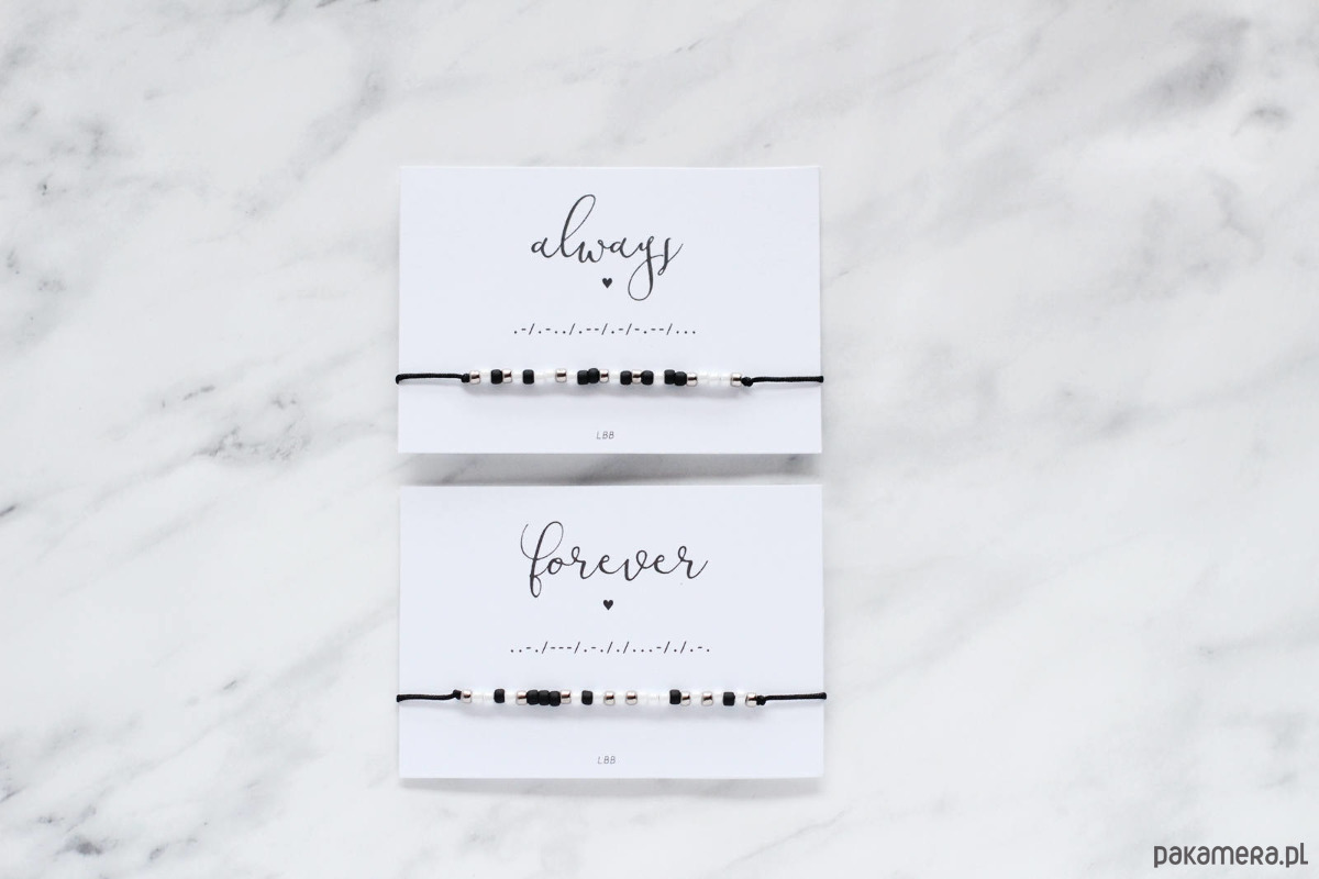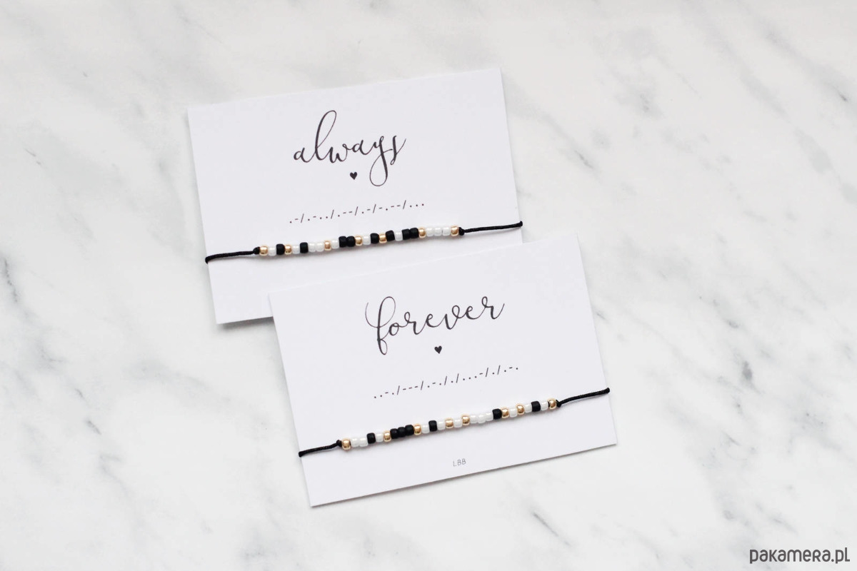 Zestaw dwóch delikatnych bransoletek z ukrytymi wiadomościami zapisanymi alfabetem Morse'a.