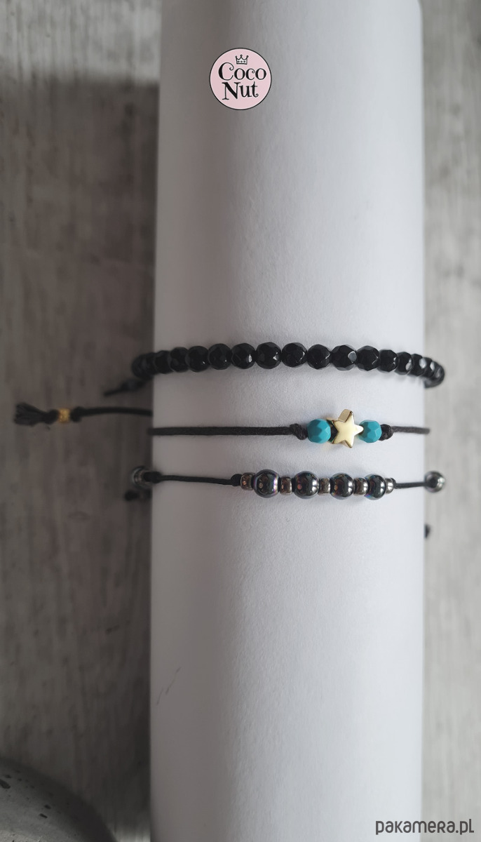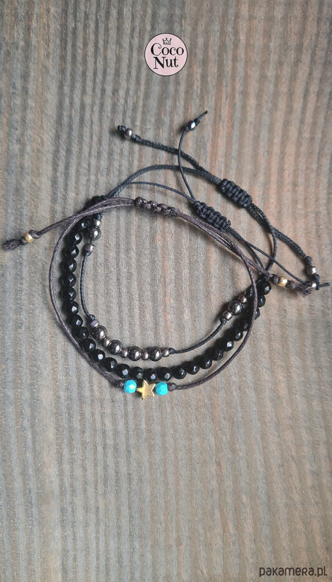 Zestaw bransoletek: hematyt, turkus, onyks na sznurku