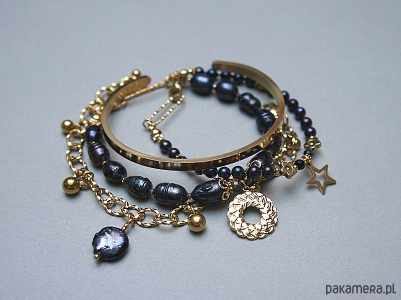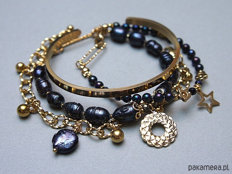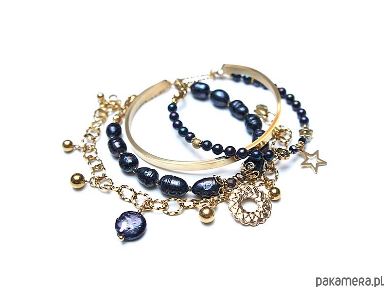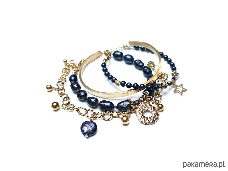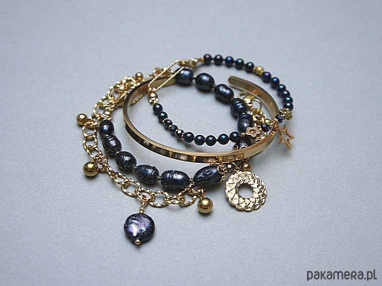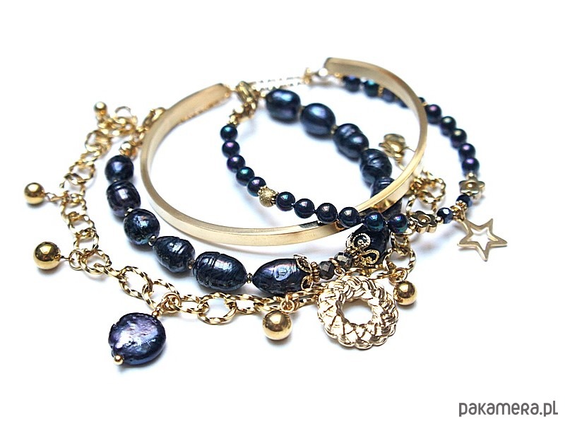 Zestaw bransoletek Perły granatowe - Szlachetna kolekcja