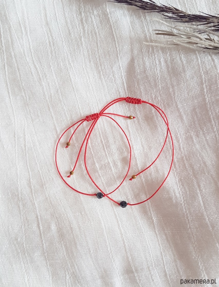Delikatne bransoletki z Czarnym Turmalinem na czerwonej nitce Mama&Córka.
