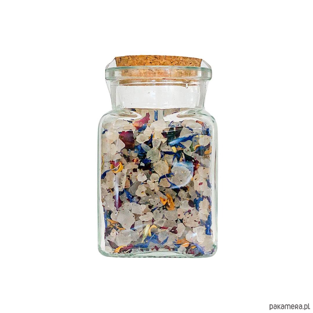 * Sól kąpielowa Tajemniczy ogród, Skład: sól kłodawska, płatki róży, kwiat pomarańczy, bławatek, aromat