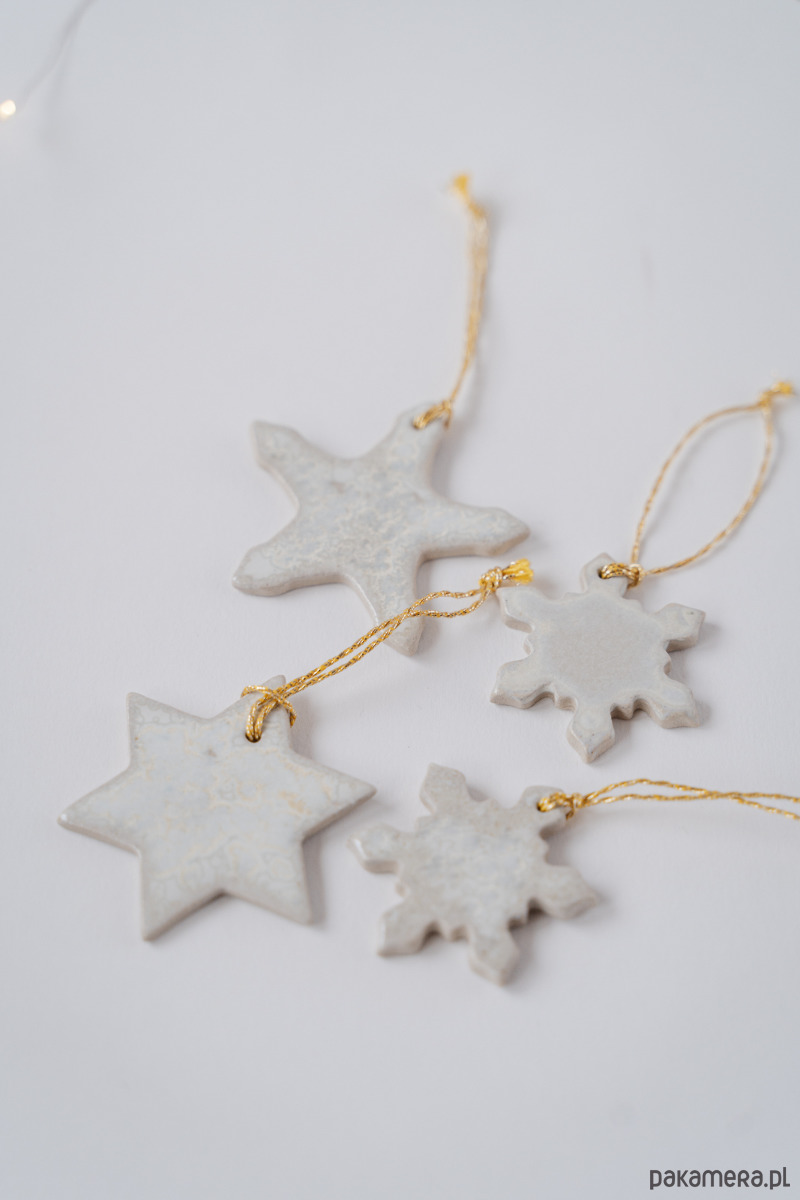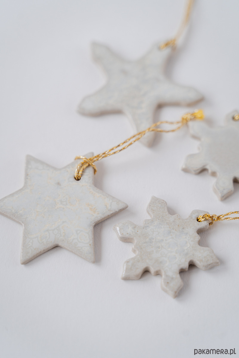 Zestaw ceramicznych ozdób choinkowych.