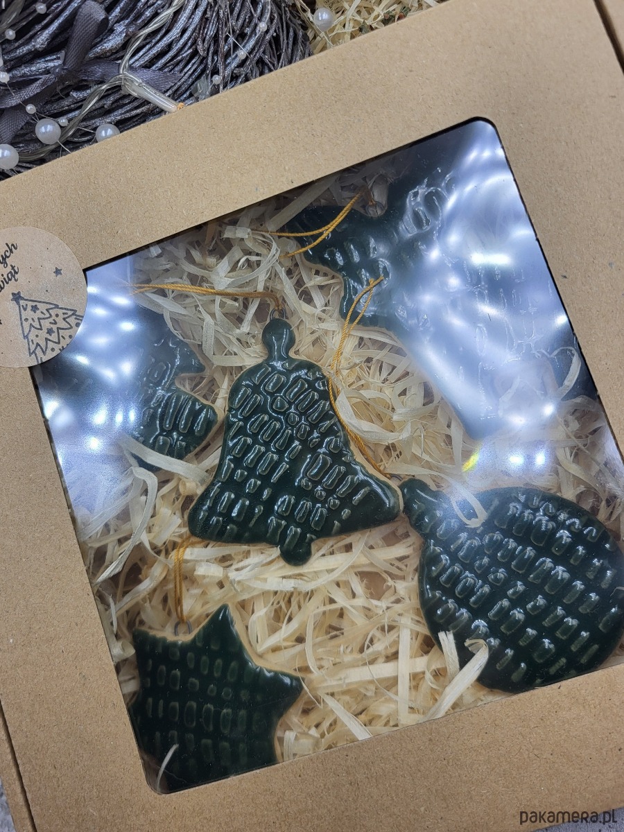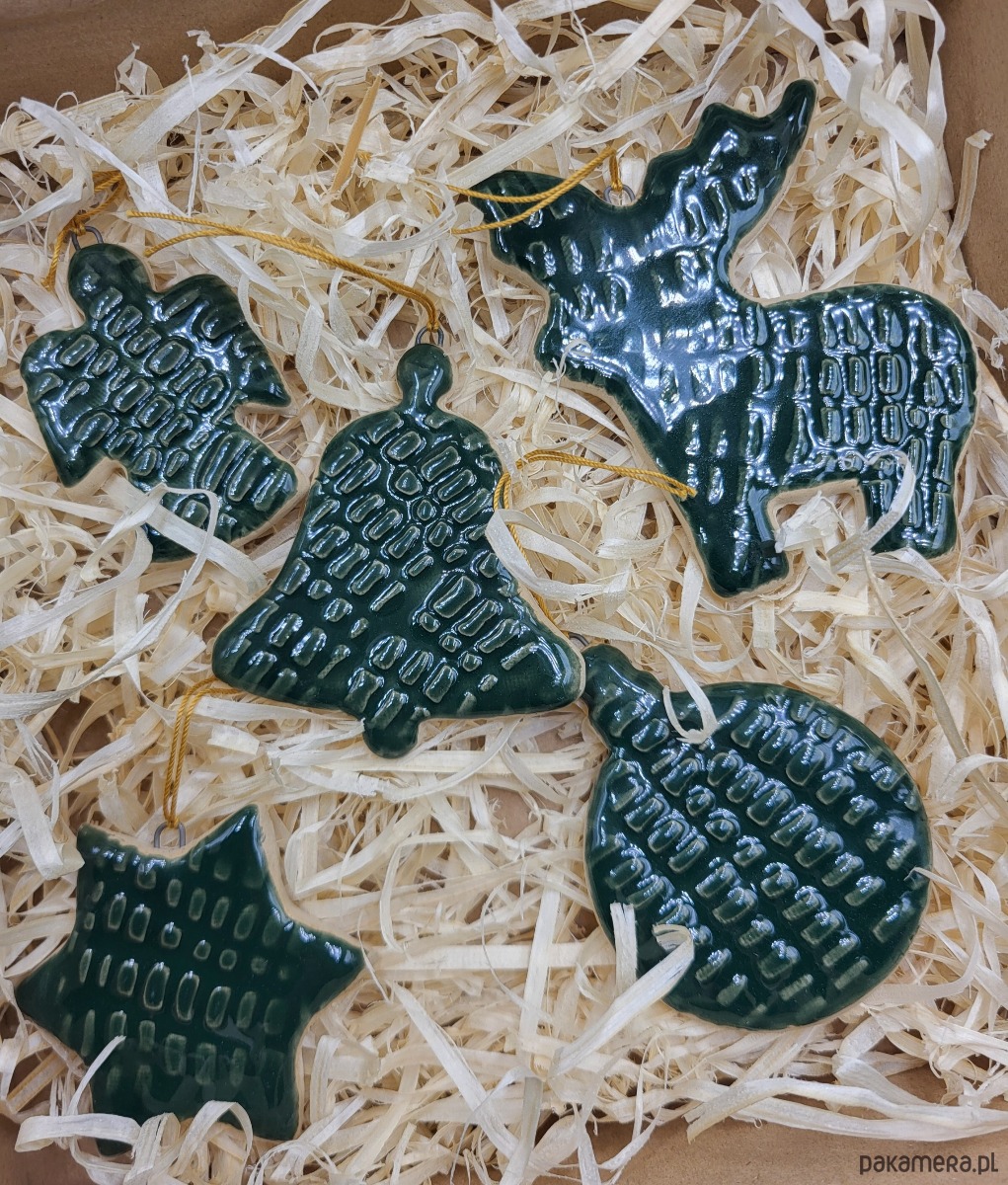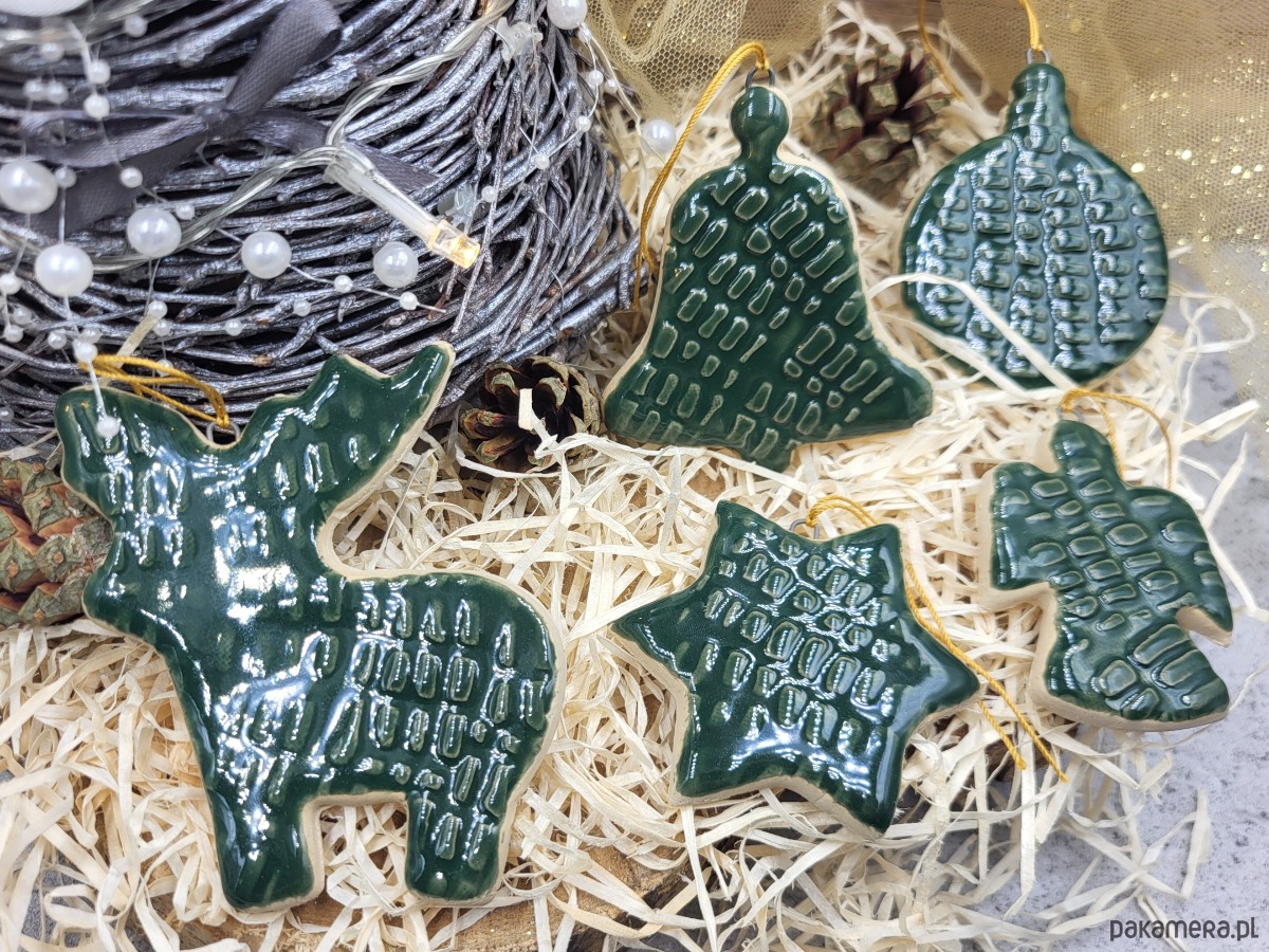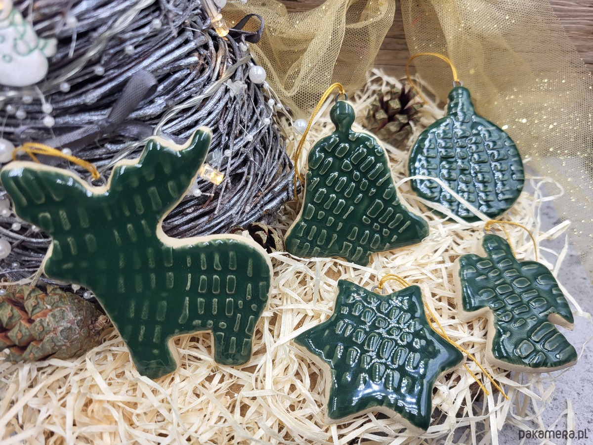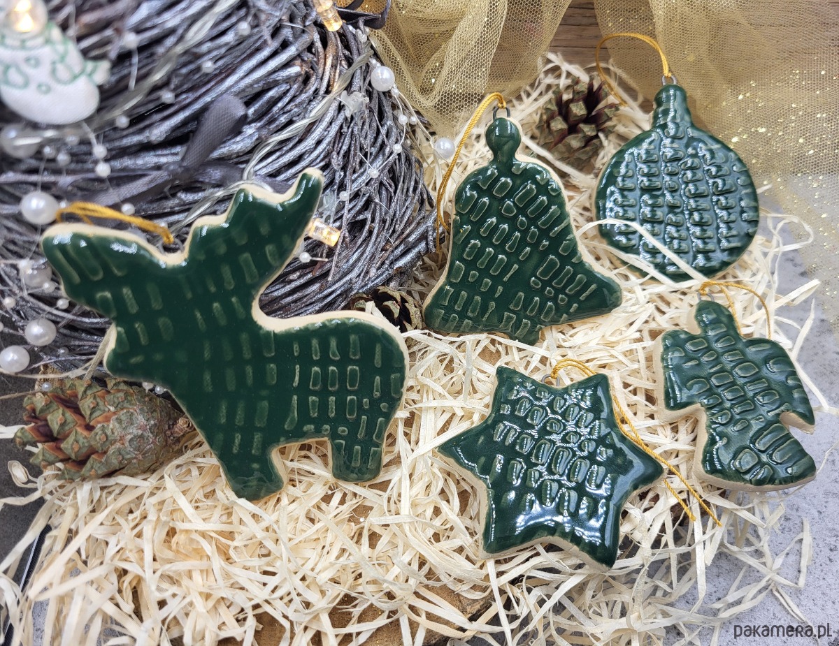 Ręcznie formowane, ceramiczne zawieszki na choinkę.