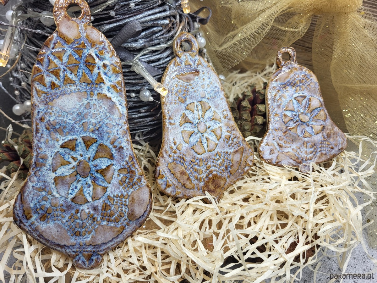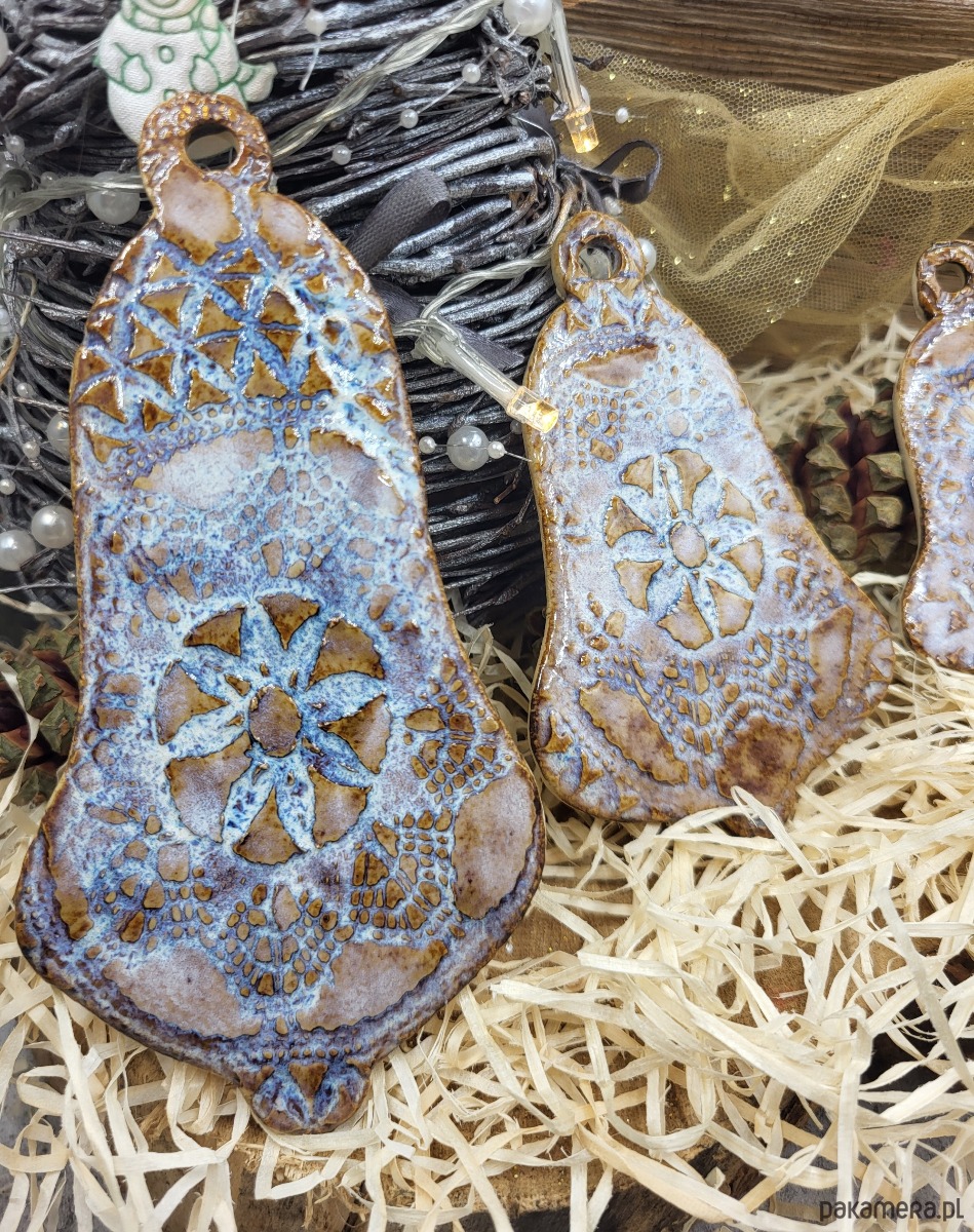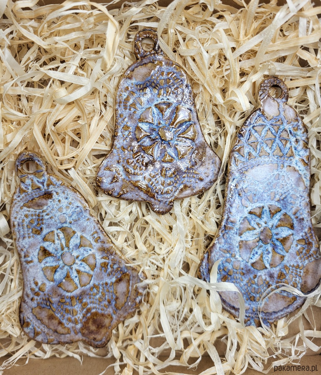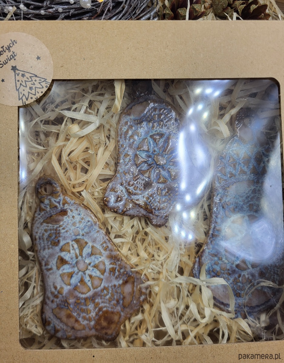 Ręcznie formowane, ceramiczne zawieszki na choinkę.